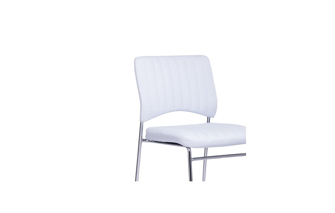 Cadeira com estrutura de metal cromado e estofo em pele sintetica, disponivel nas cores preto e branco Prazo de Entrega 10 a 20 dias Dimensões em cm L 49,5 P 55,5 A 81