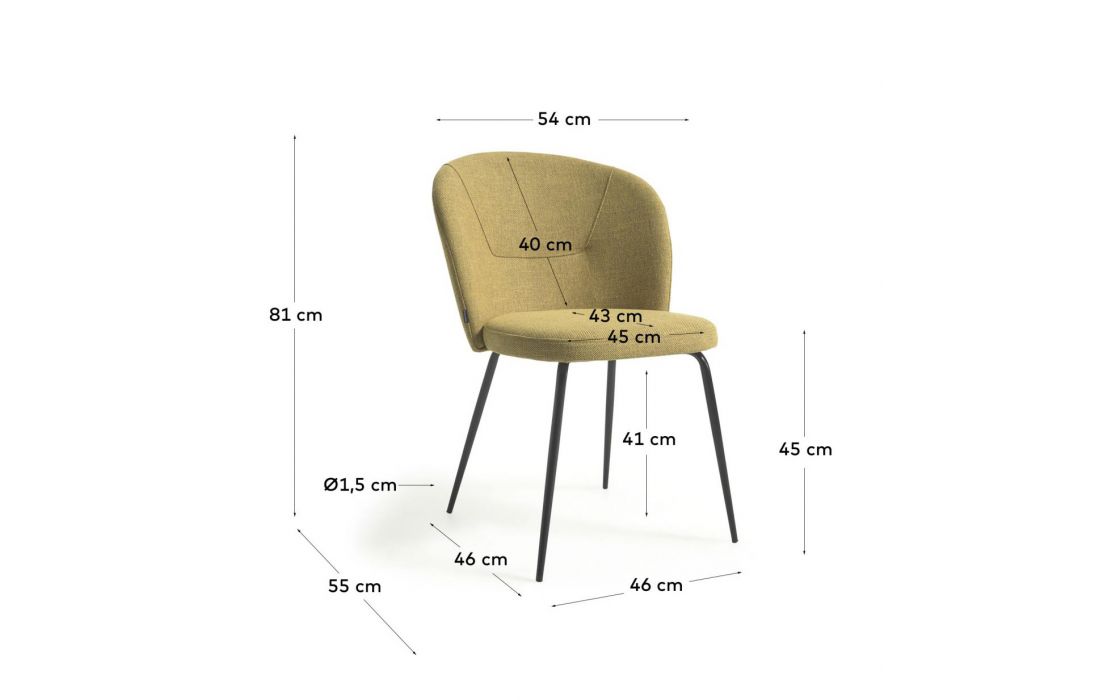 Cadeira com estrutura de metal cor preta e estofo em tecido, disponivel nas cores cinza e mostarda Prazo de Entrega 15 a 20 dias Dimensões em cm L 54 P 55 A 81