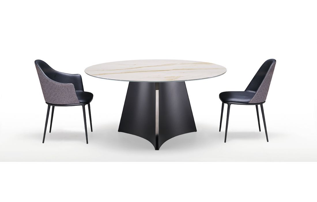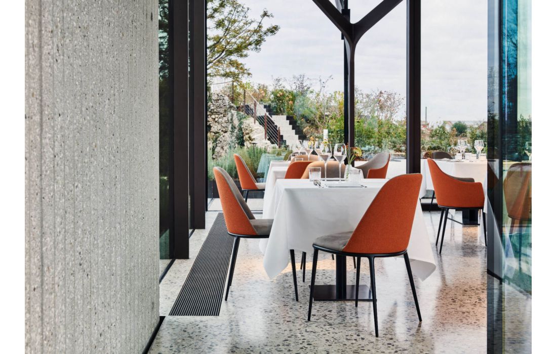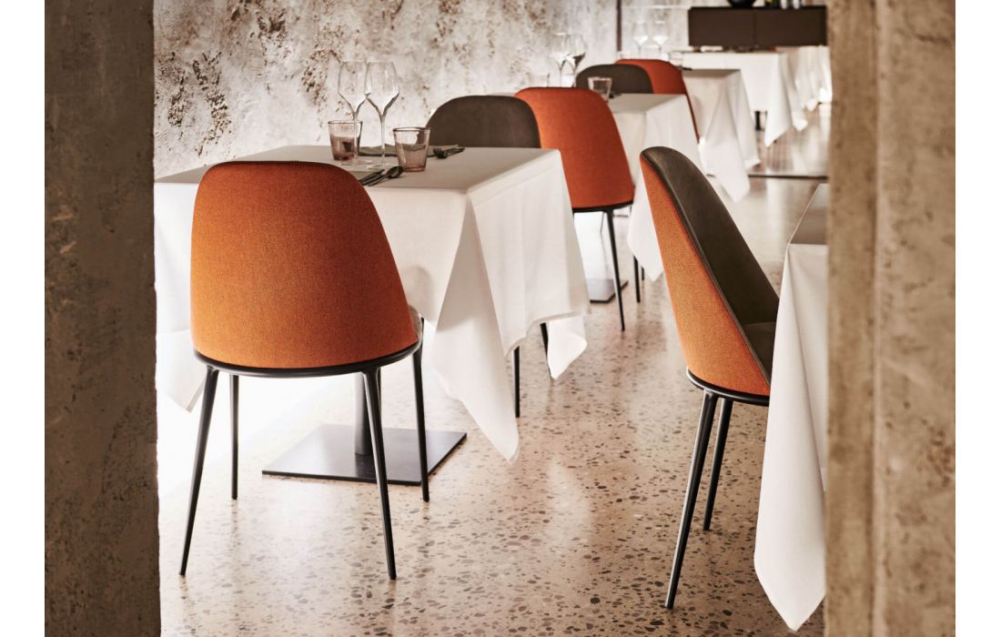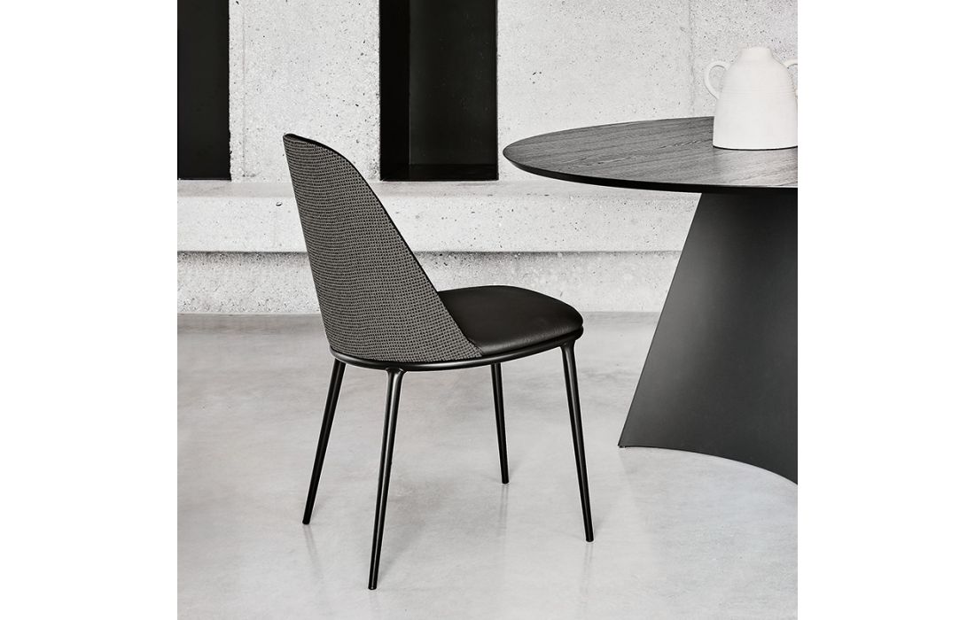 Cadeira em pele sintética e costa exterior em tecido, com estrutura em metal.Destinatário :