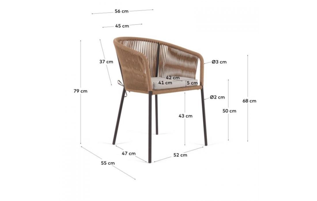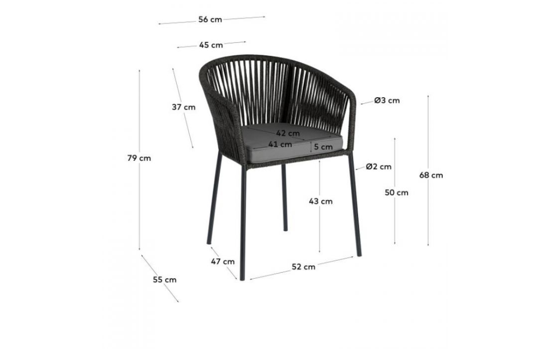 Especificações do Produto Metal e Corda Não fazemos qualquer alteração ao produto Este produto necessita de montagem Manutenção e Limpeza Limpar com um pano seco Para tirar manchas deve usar um pano húmido e de seguida passar um pano seco Legenda de medidas (C) Comprimento (P) Profundidade(A) Altura