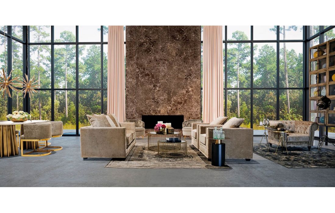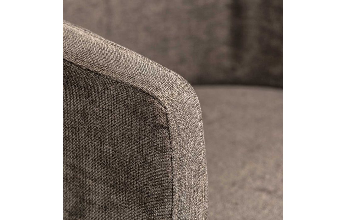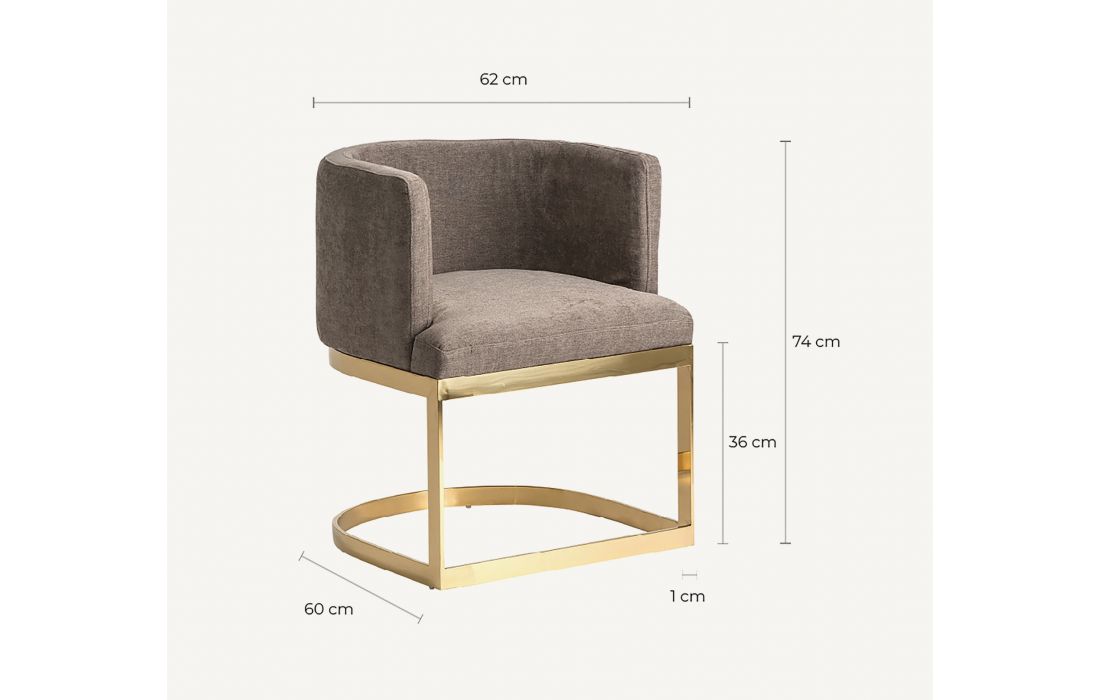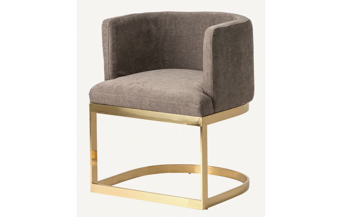 Cadeira de braços com pés de aço dourado e estofo em tecido poliester cor cinza