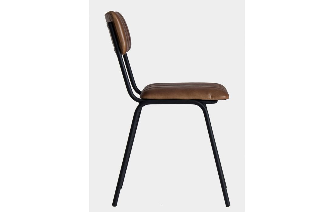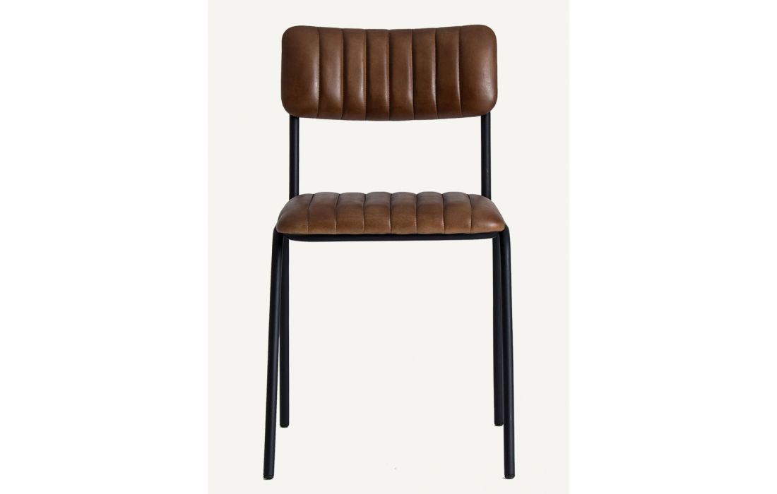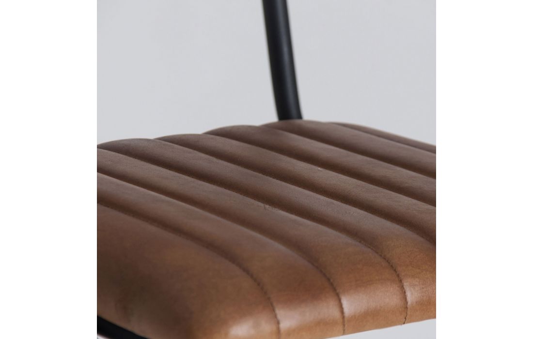 Cadeira com estrutura de ferro preto e estofada em pele de cabra cor castanha