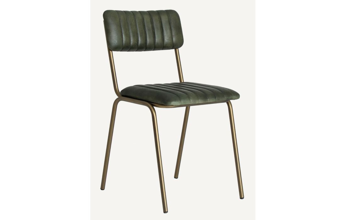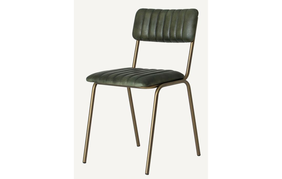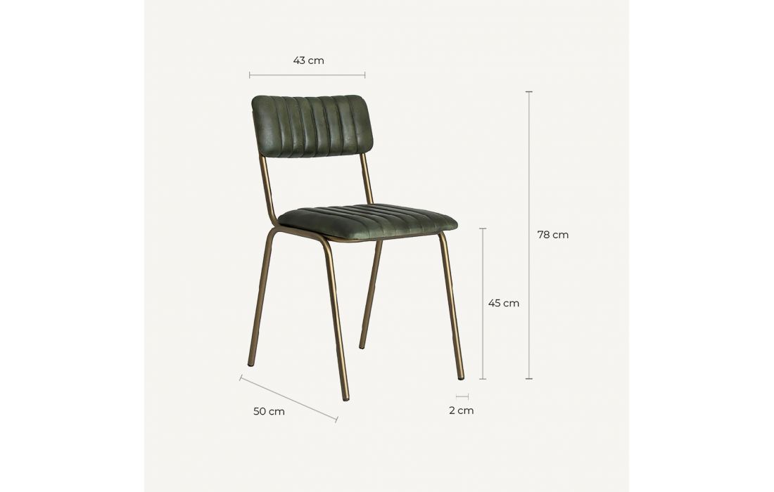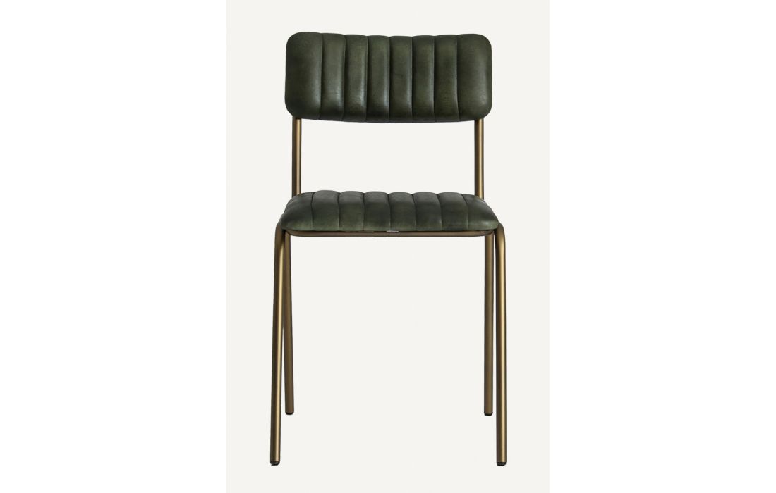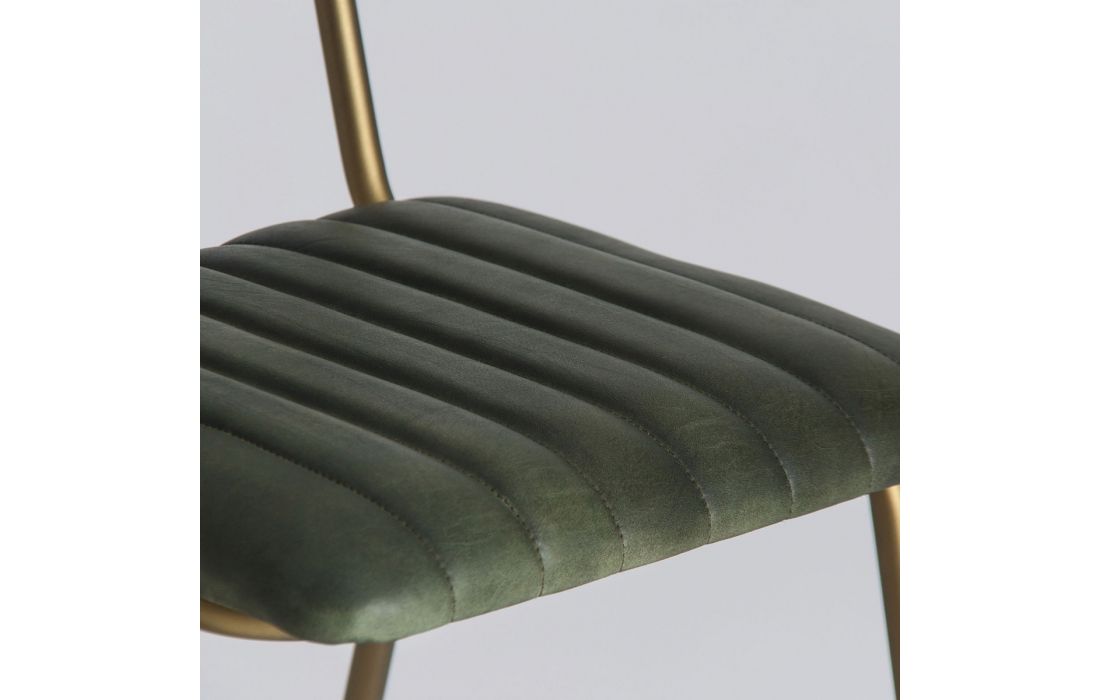 Cadeira com estrutura de ferro dourado e estofada em pele de cabra cor verde