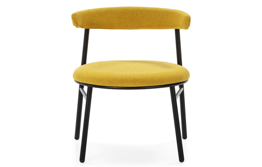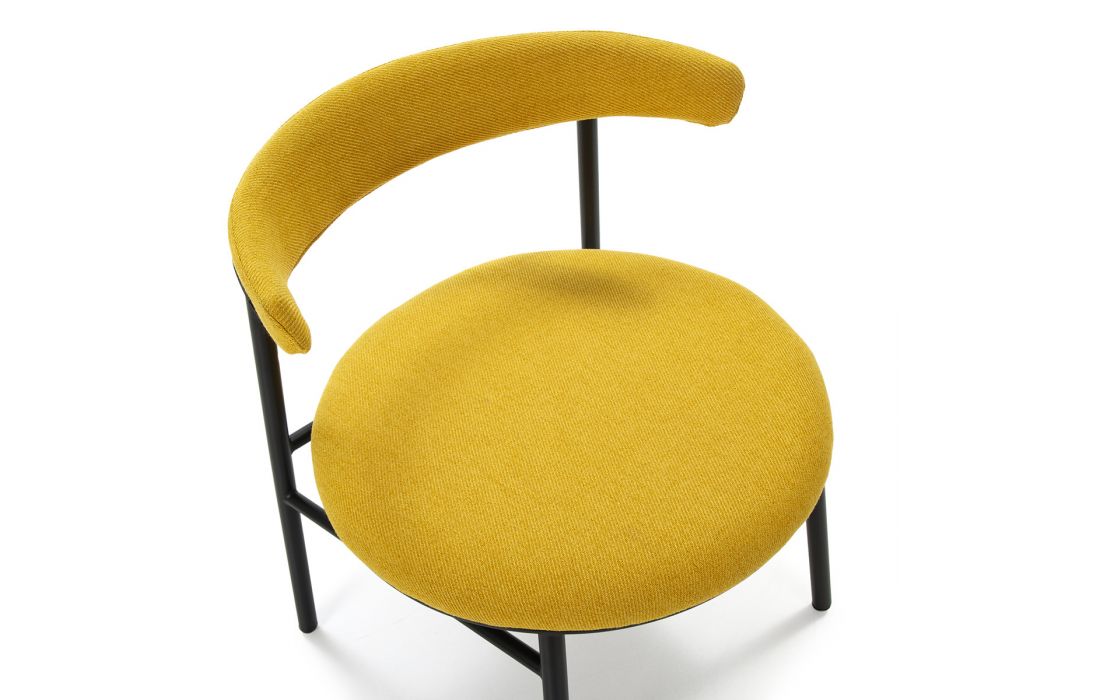 Cadeira com estrtura em metal preto e estofo em tecido poliester cor amarela