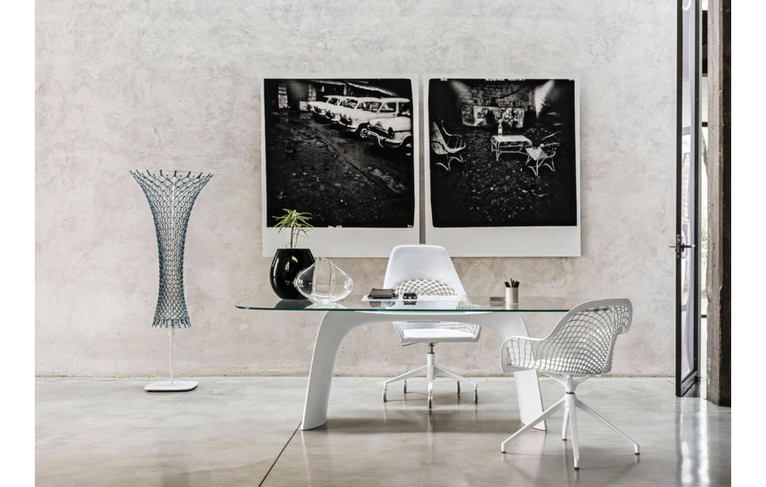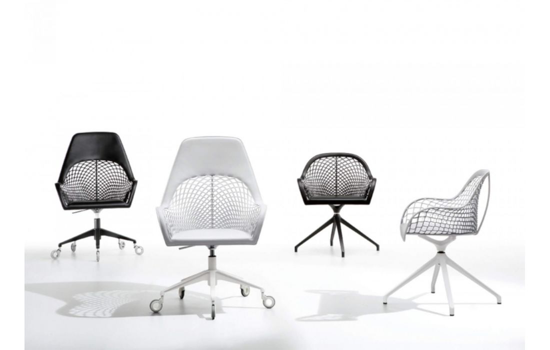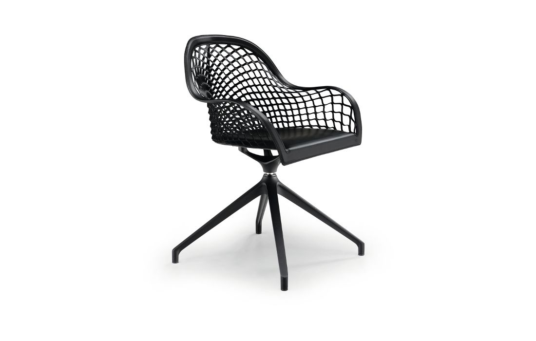 Cadeirão giratório com base em cavalete em metal, assento e encosto em couro.Destinatário :