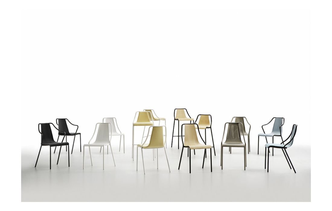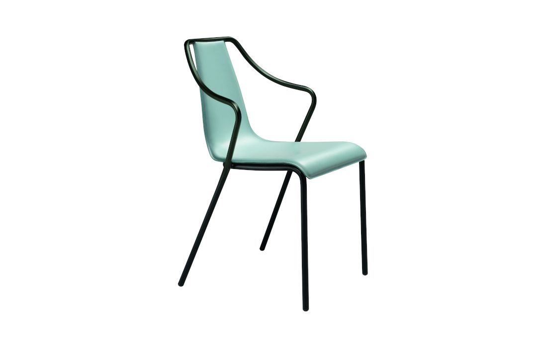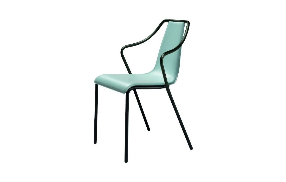 Cadeirão com estrutura em metal lacado e concha estofada em pele ou tecido.Destinatário :