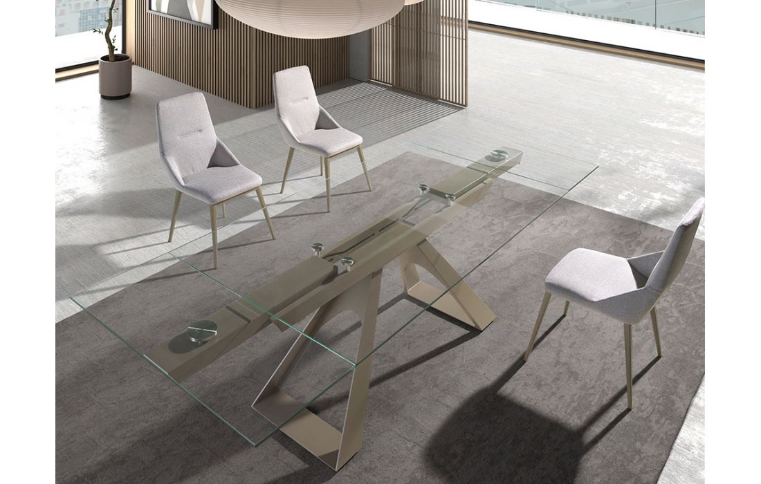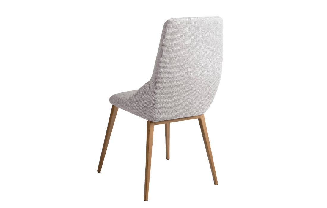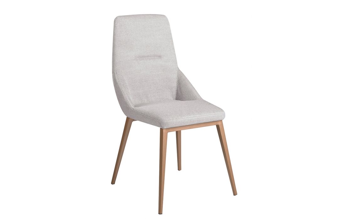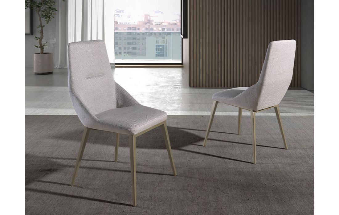 Cadeira com pés de aço inoxidável cor dourada e estofo em tecido cor cinza claroDestinatário :