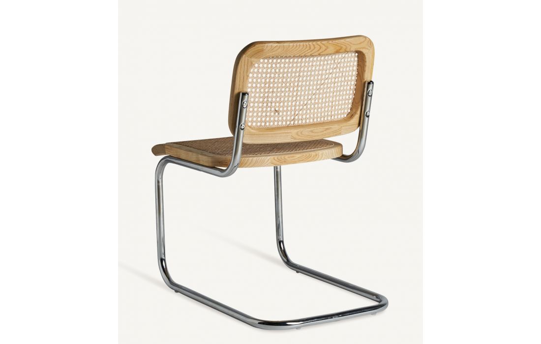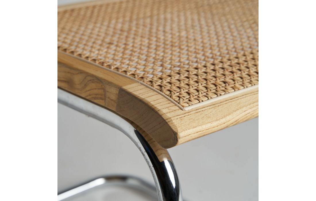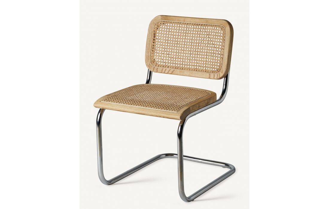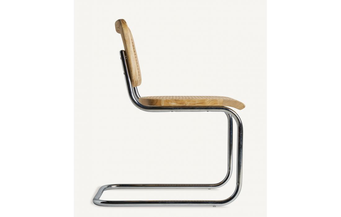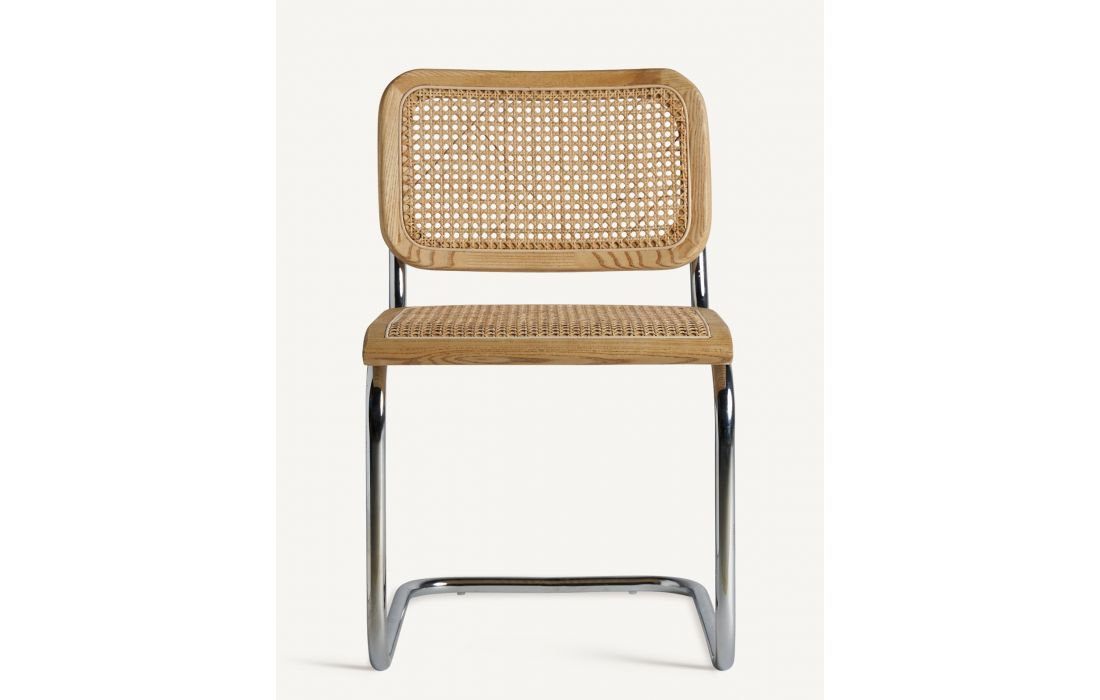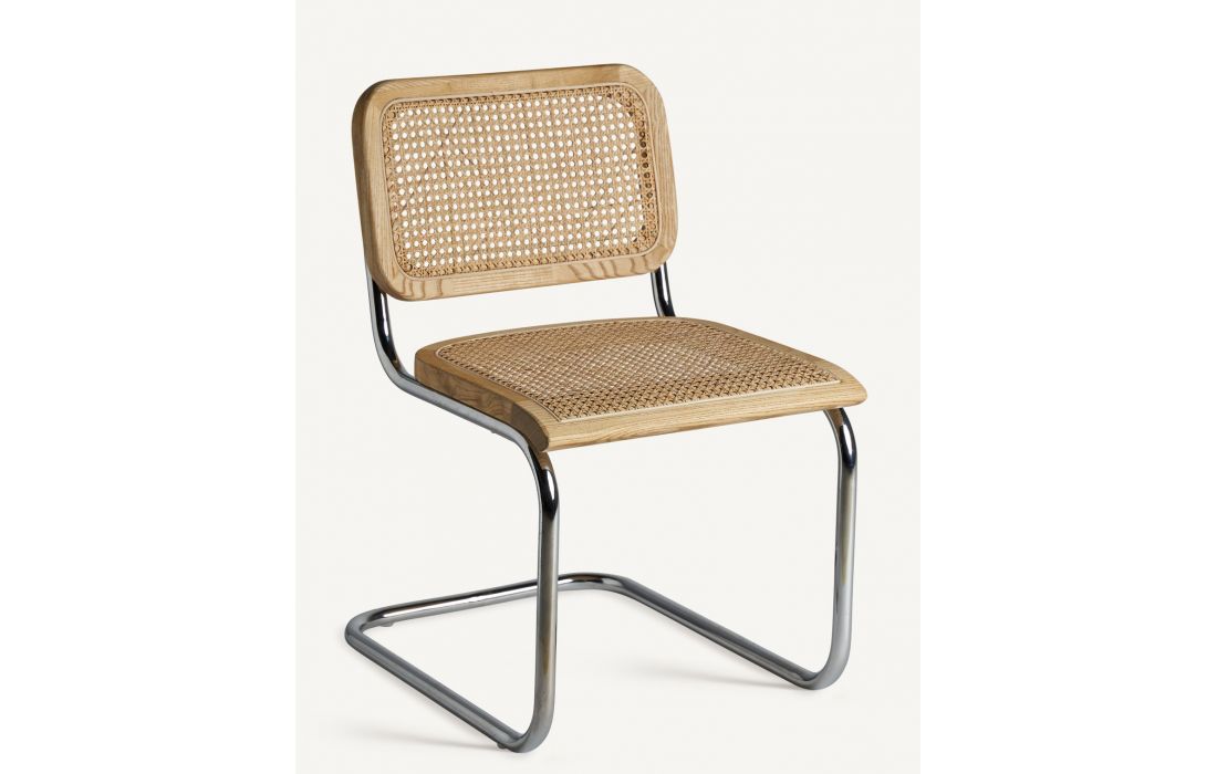Cadeira com estrutura em aço, assento e costa em madeira de olmo e palhinha cor natural