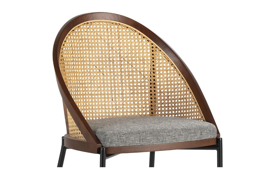 Cadeira em madeira de faia ratan com estofo em tecido com cor cinzenta e com os pés em metal preto.Destinatário :
