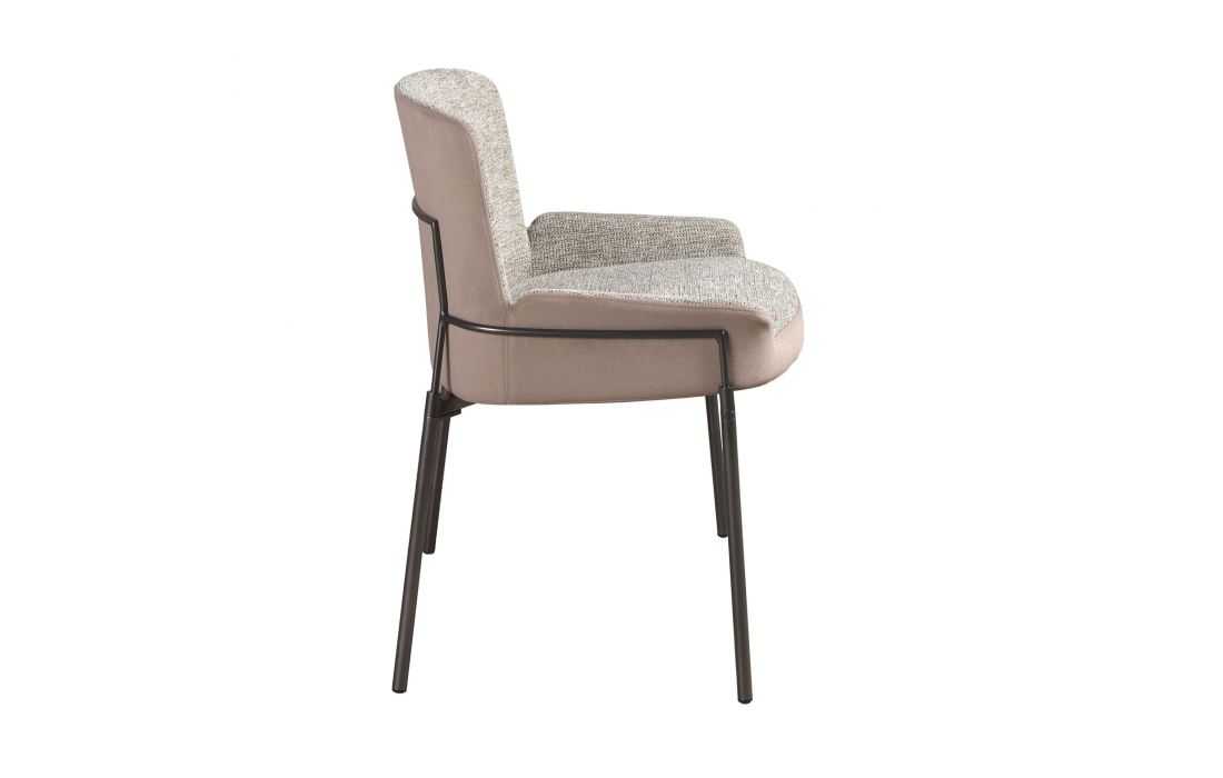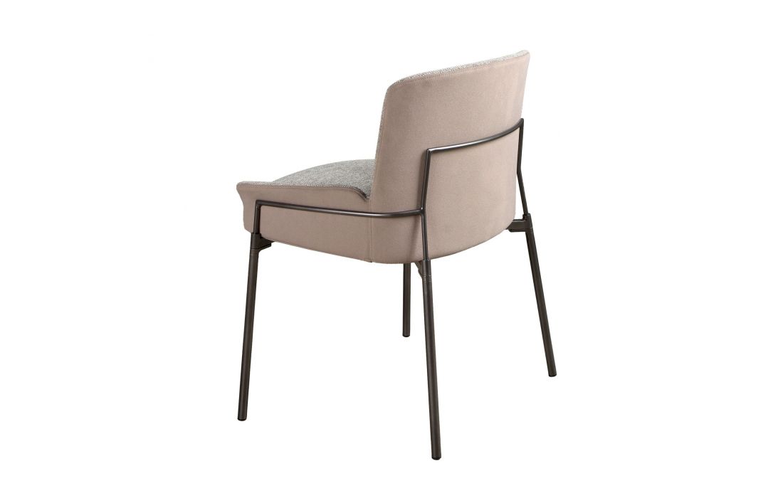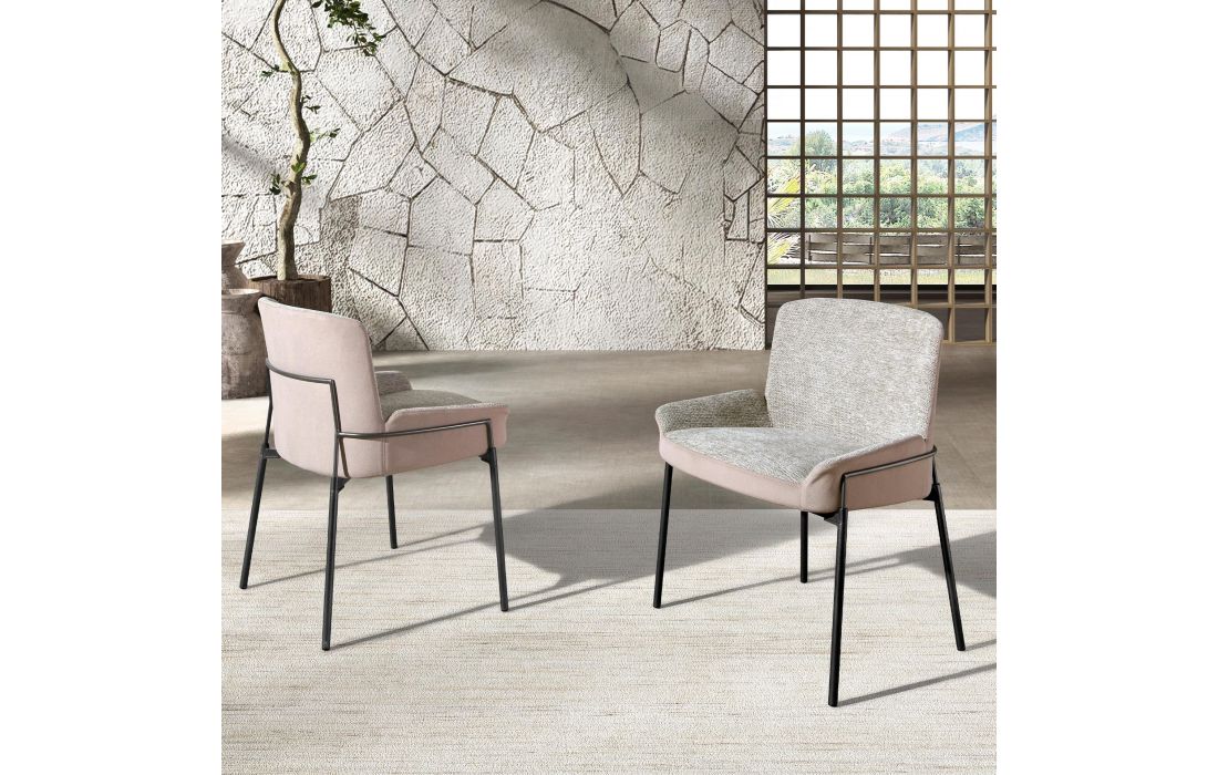 Cadeira de design moderno com assento estofado em tecido cinzento e encosto estofado em tecido de veludo e as suas pernas em aço inoxidável escurecido com um estilo vanguardistaDestinatário :