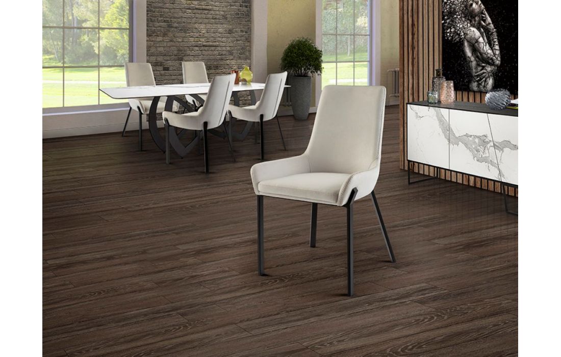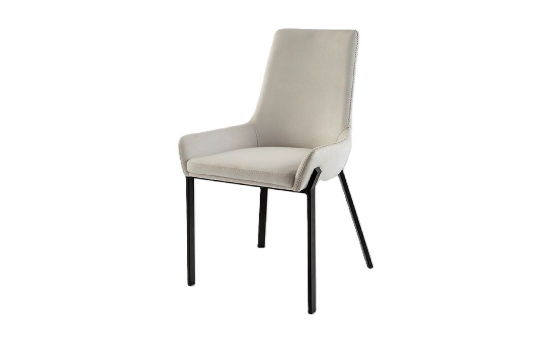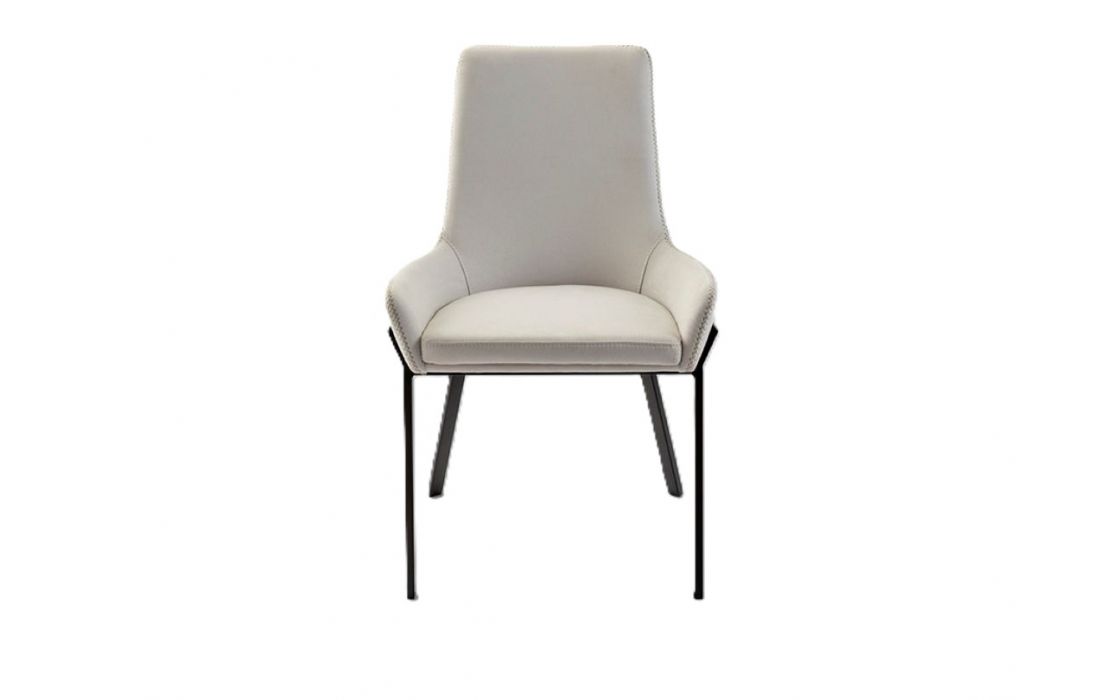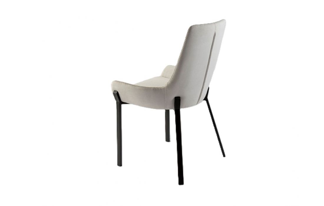 Cadeira em tecido na cor branca com pesponto decorativo em branco e pés em metalDestinatário :