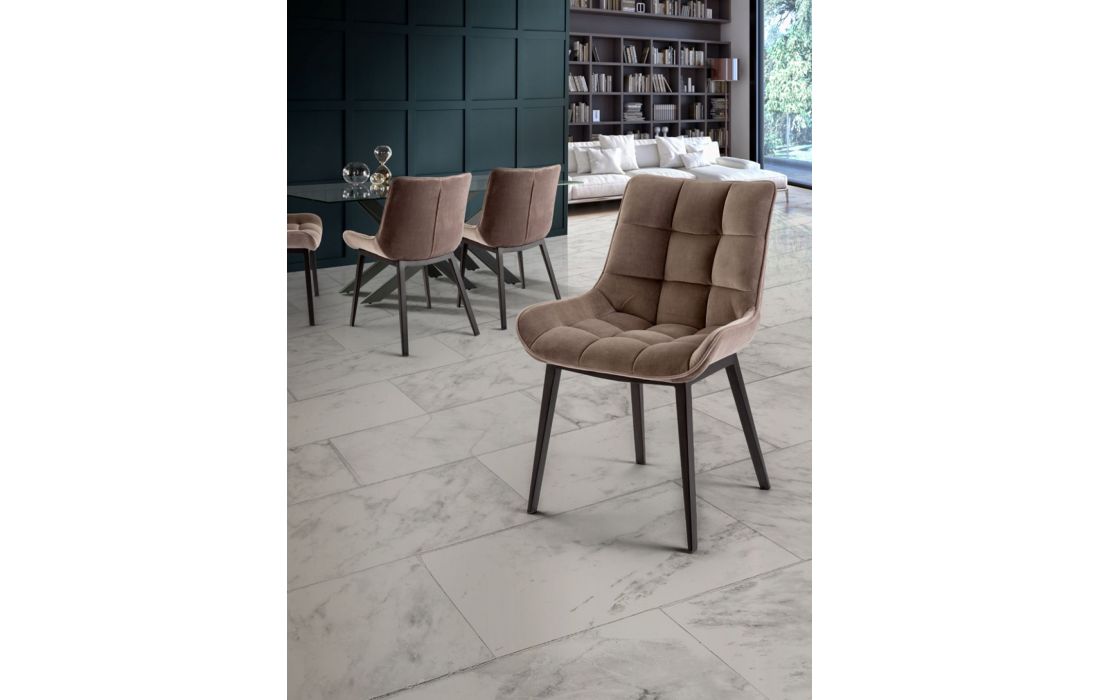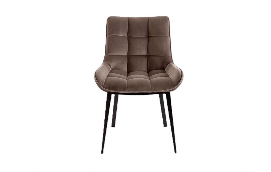 Cadeira com encosto e assento em tecido (veludo) e pés em metal com acabamento mateDestinatário :
