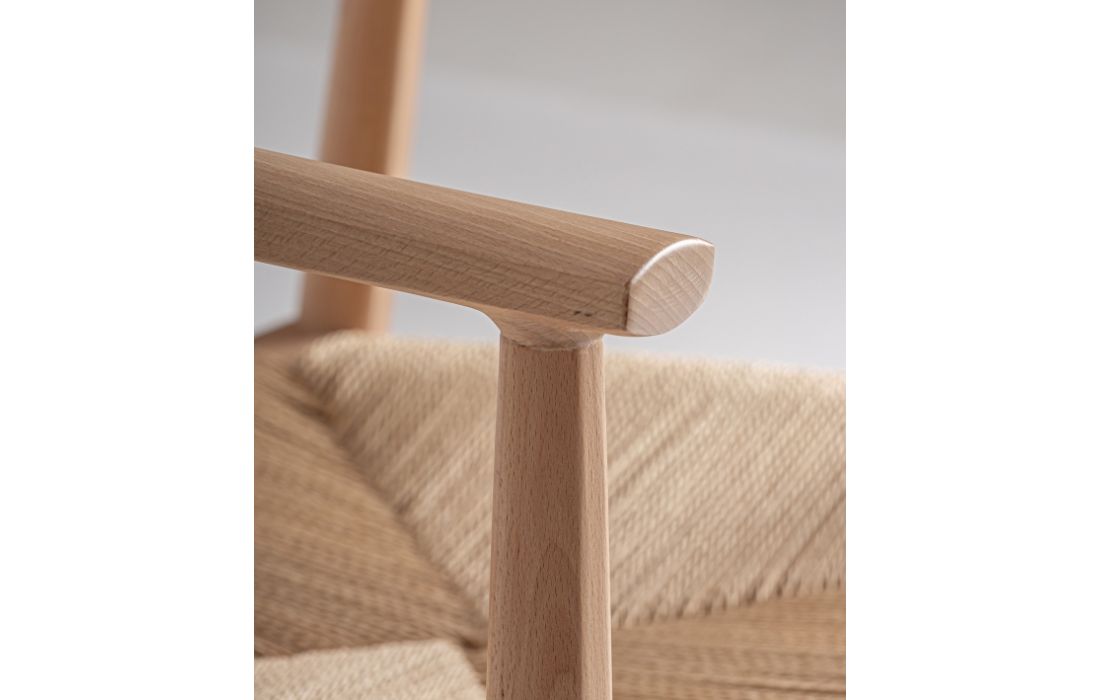 Esta cadeira feita de madeira de faia, destaca-se pelo seu design envolvente e pela combinação criteriosa de materiais. Uma peça concebida em materiais naturais e de uma estética acolhedora e intemporal.Destinatário :