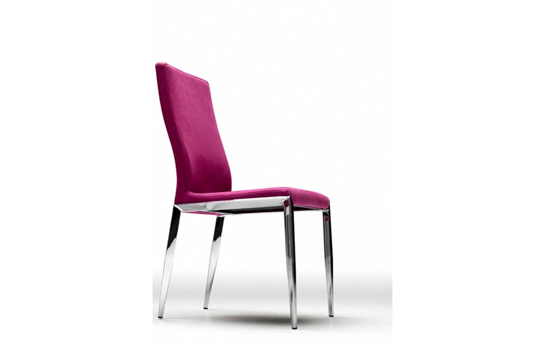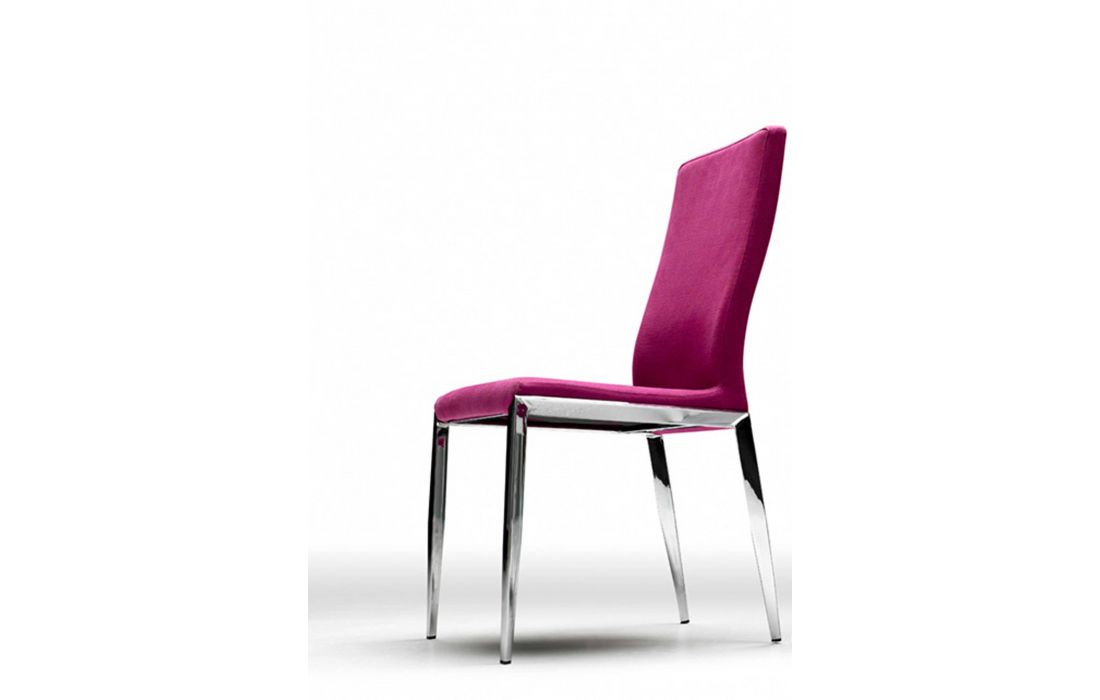 Cadeira em pele genuína, tecido ou ecopele com pés em metal cromado