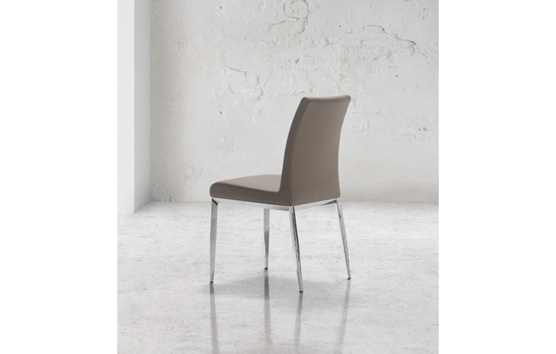 Cadeira em tecido, ecopele ou pele genuína com pés em metal cromado