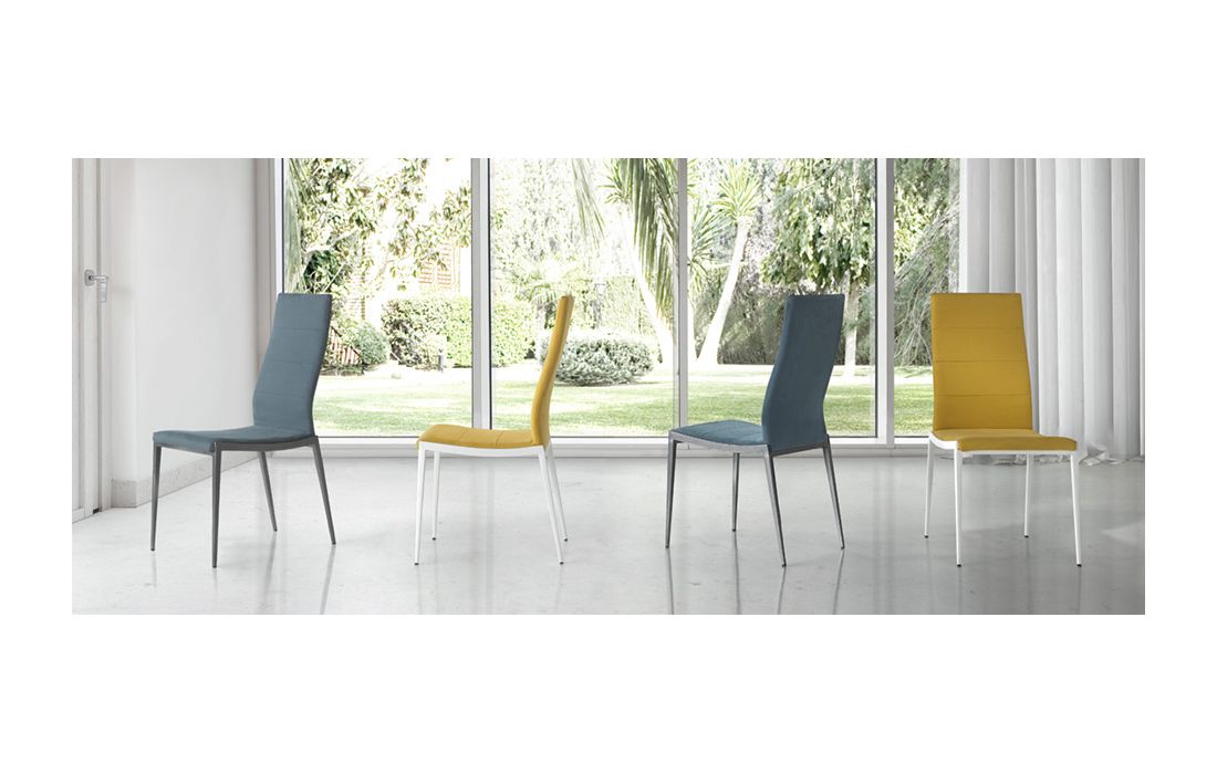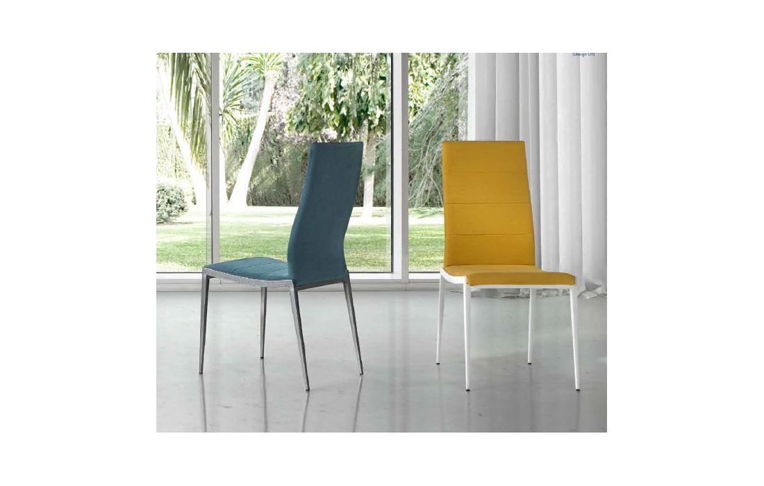 Cadeira em tecido, ecopele ou pele genuína com pés metal