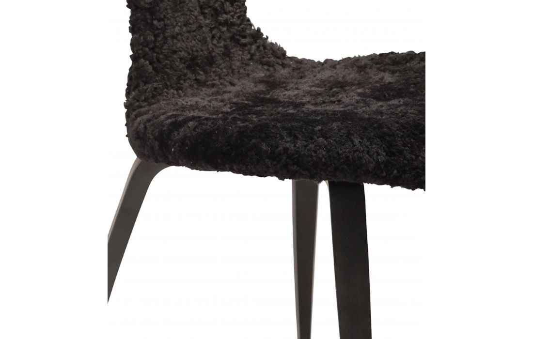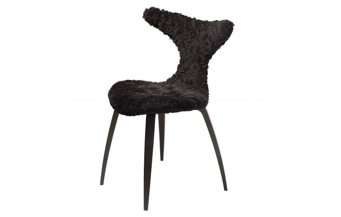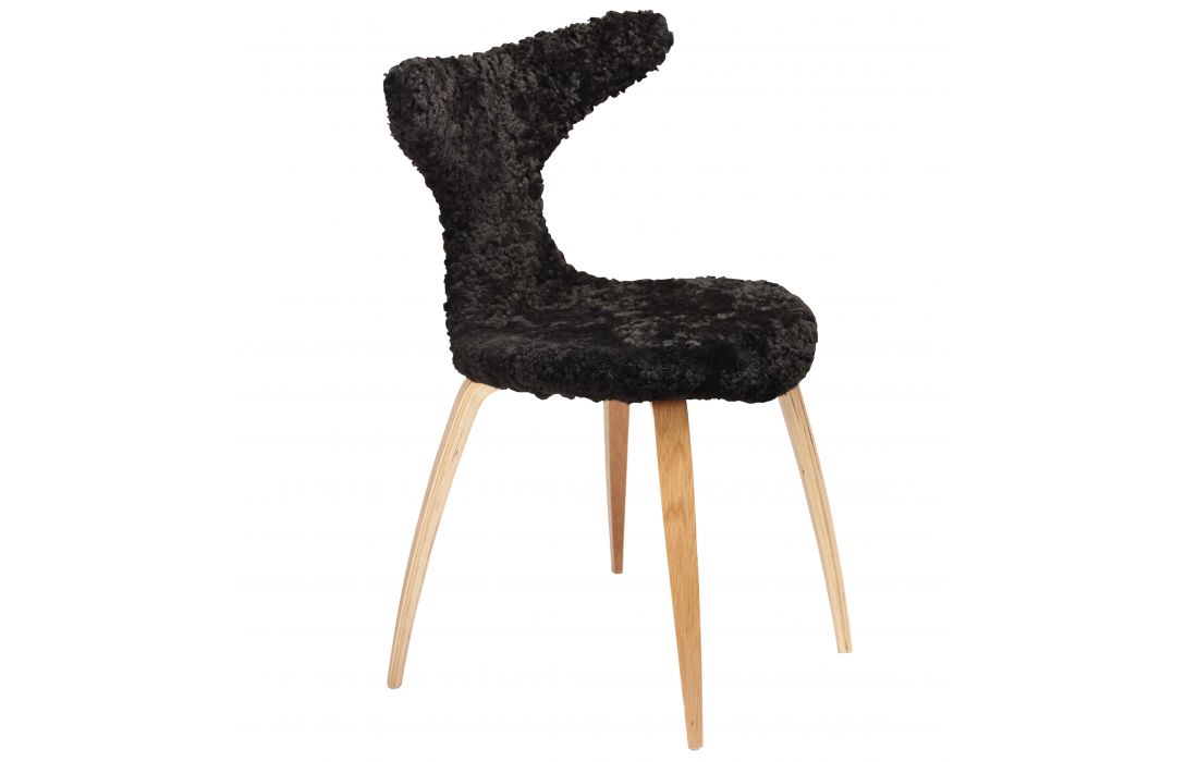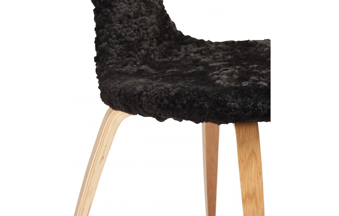 Cadeira com estofo em lã preta com pés em madeira maciça pintada em preto ou em carvalho
