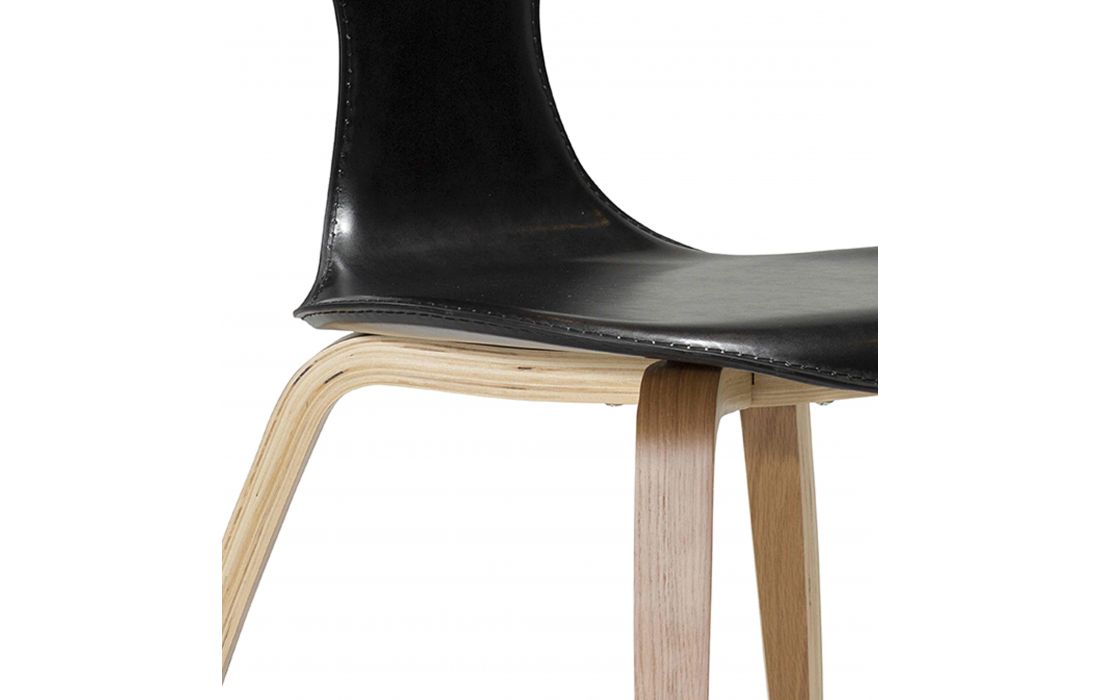 Cadeira com estofo em couro regenerado preto com pés em madeira maciça de carvalho