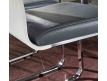 Cadeira com base em aço com assento estofado em pele sintética ou tecido com costa lacada nos vários acabamentos possíveis