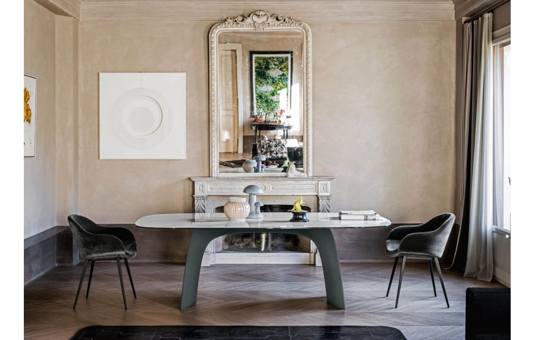 Cadeirão revestido em tecido, ecopele sintética ou pele genuína com estrutura em aço branco ou grafite