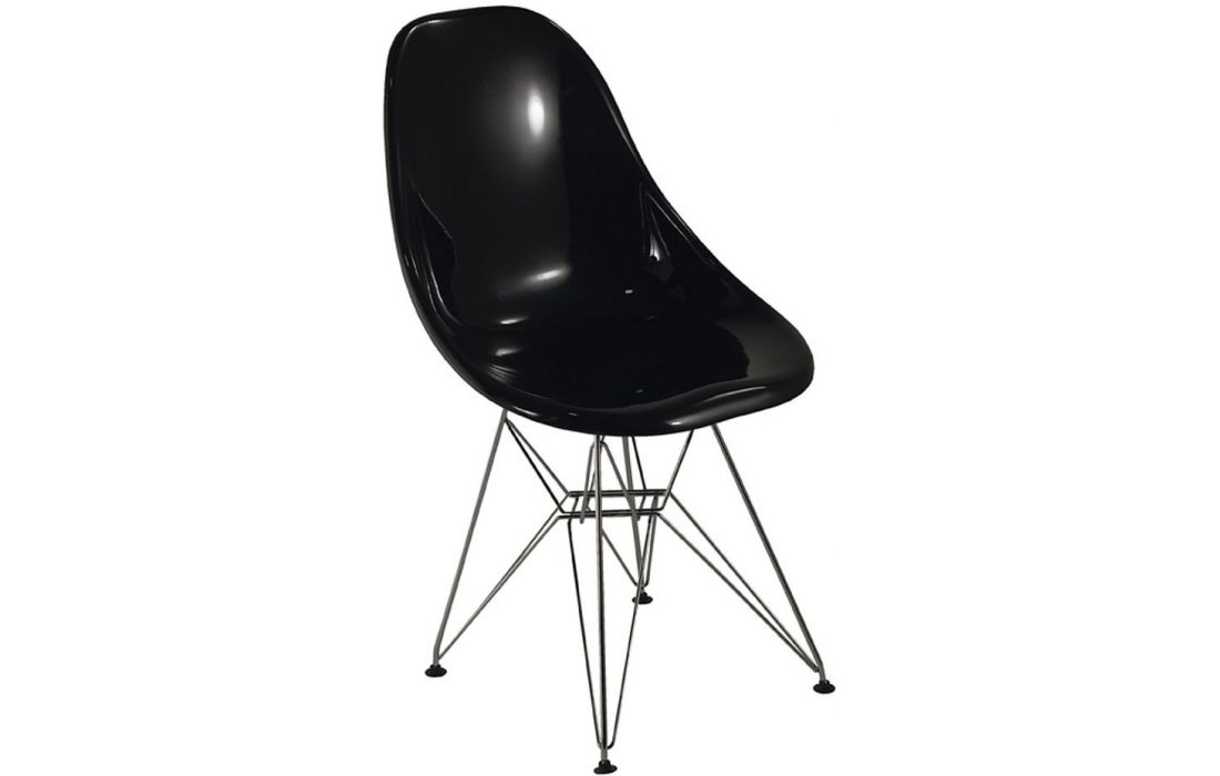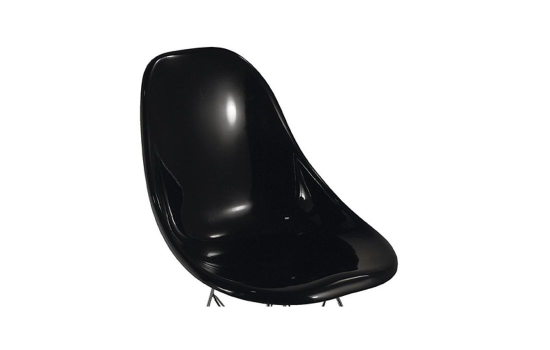 Cadeira com estrutura em fibra de vidro e pés em metal