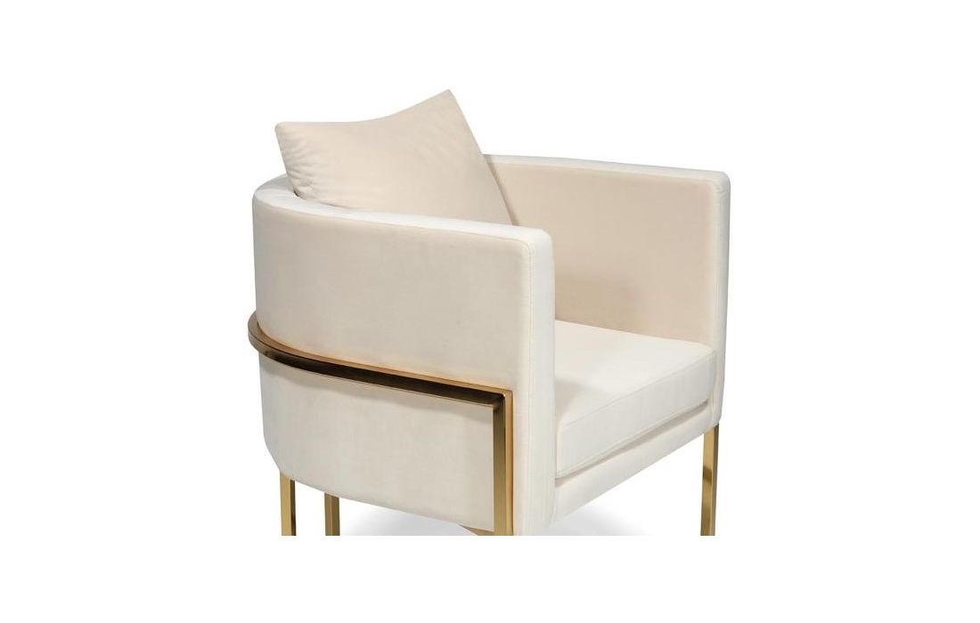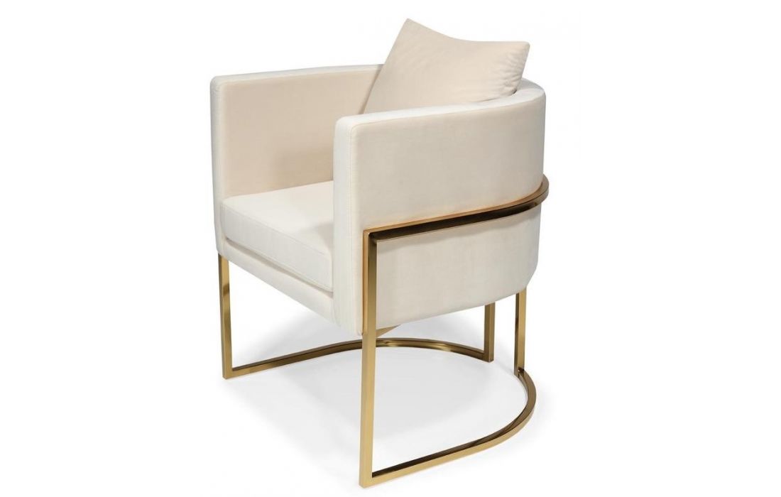 Cadeirão com estrutura em inox dourado e estofo em veludo.
