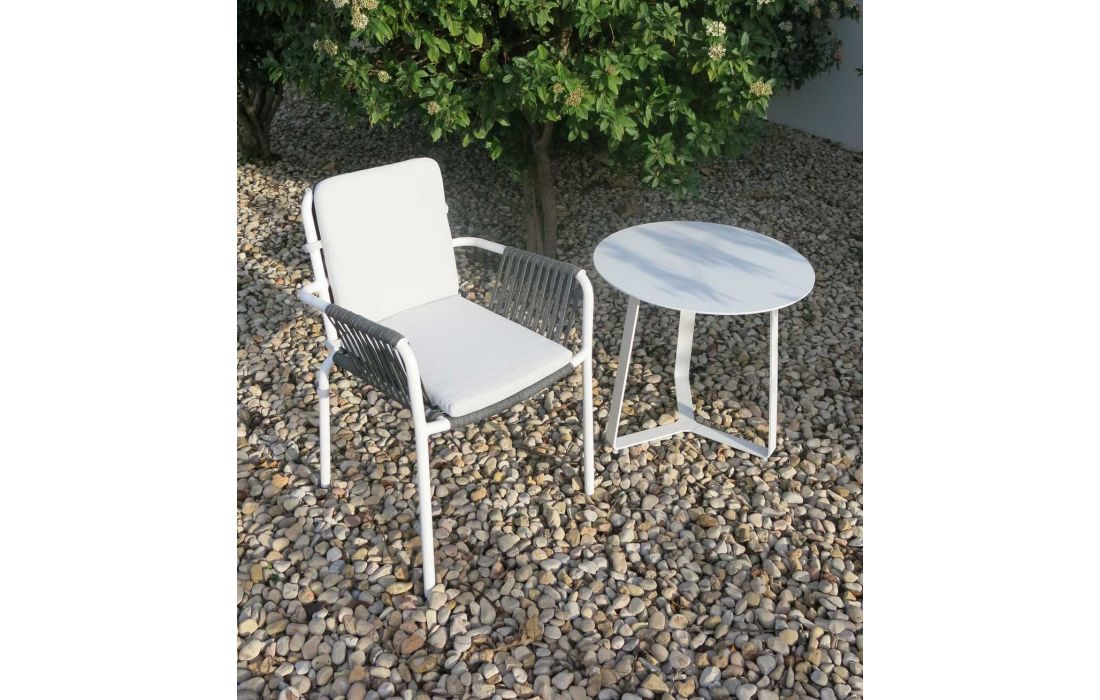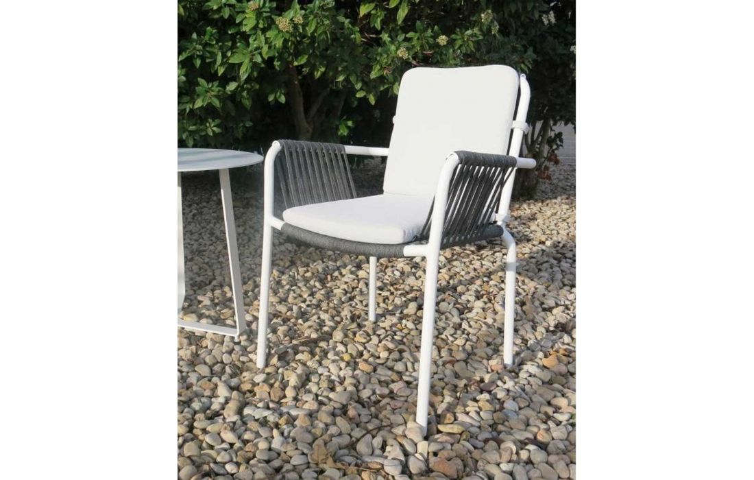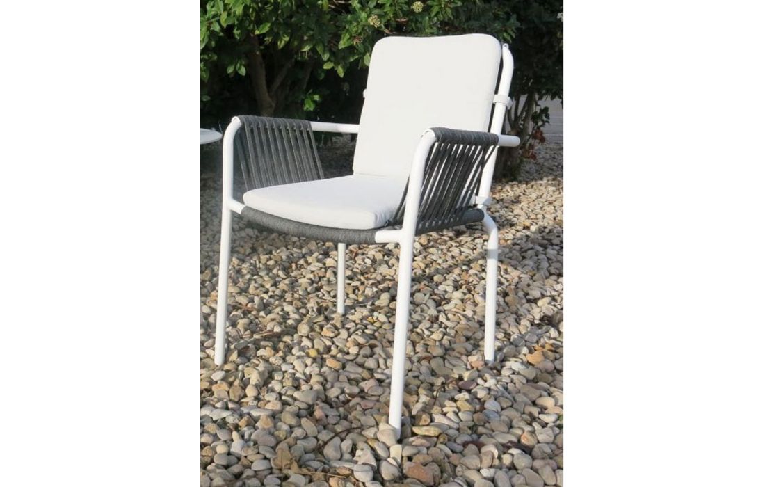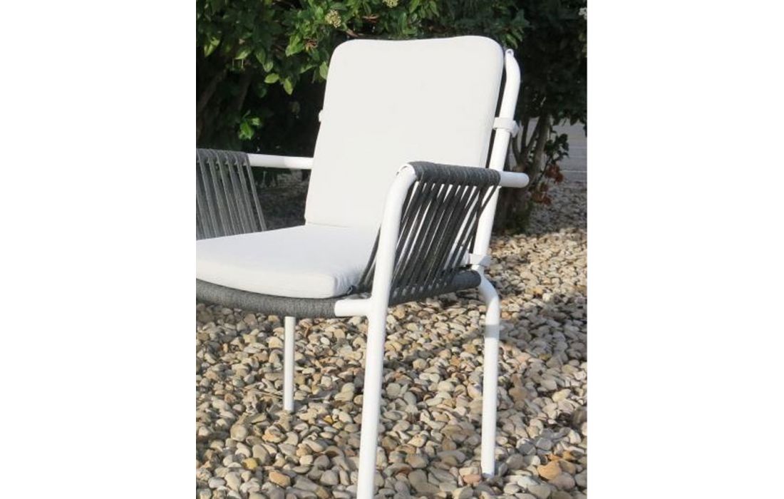 Cadeira com estrutura de alumínio branco com almofadas em tecido.Destinatário :
