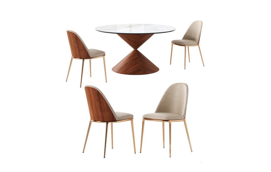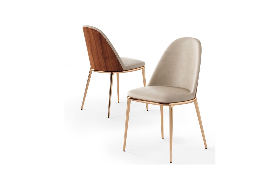 Cadeira com estrutura em metal DB Golden Bronze e costa exterior em nogueira I24 Flamed Walnut (igual à imagem).