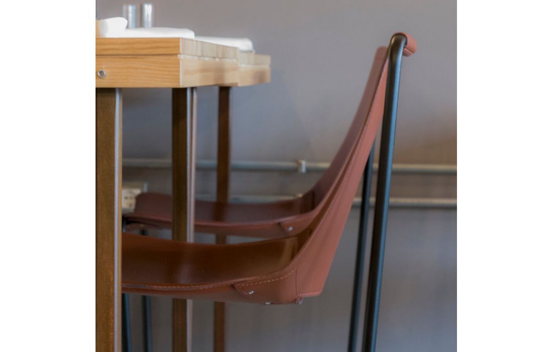 Especificações do Produto Metal / Couro Existe a possibilidade de outras cores na estrutura e revestimentos mediante orçamento prévio. Manutenção e Limpeza Limpar com um pano seco Para tirar manchas deve usar um pano húmido e de seguida passar um pano seco Legenda de Medidas (L) Largura (P) Profundidade(A) Altura