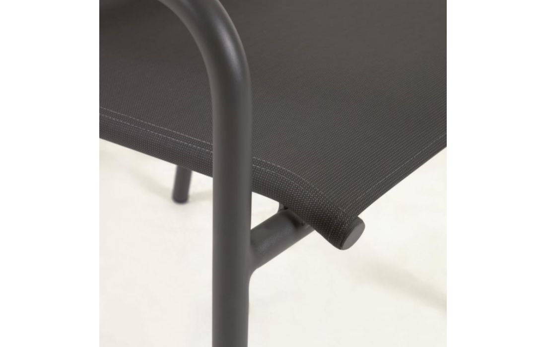 Cadeira 100% alumínio e textilene, resistente à água e aos raios UV.