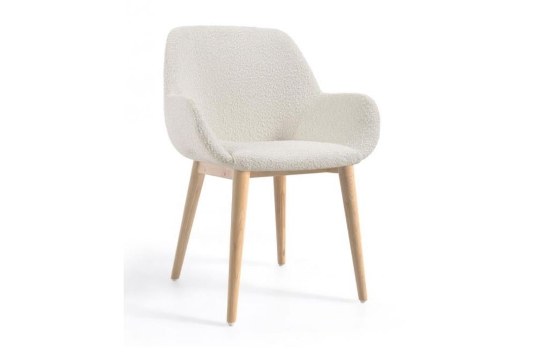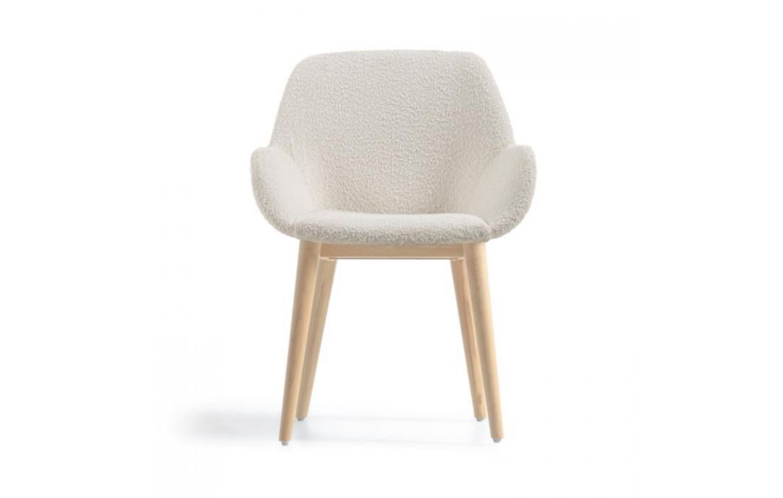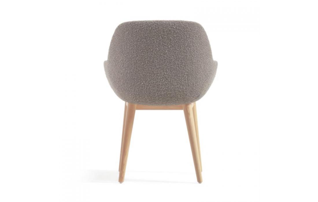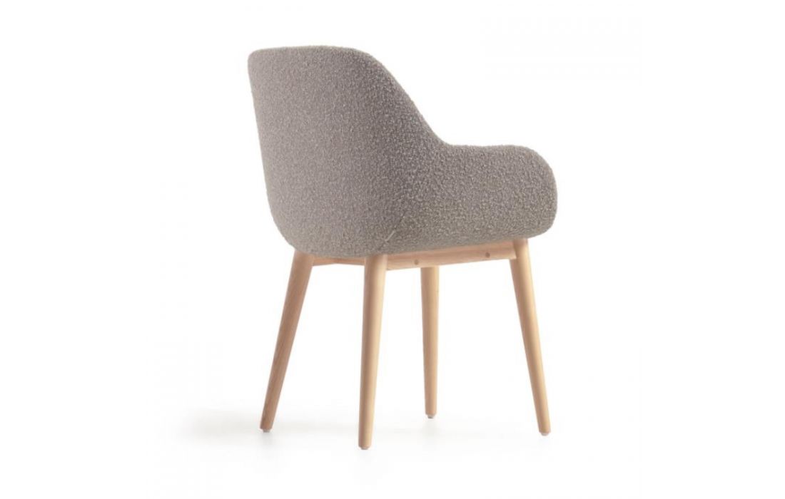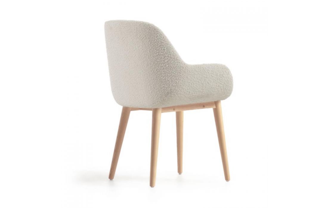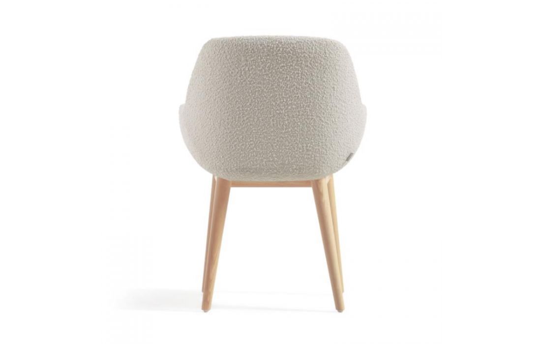 Cadeira com braços em tecido pelo de carneiro e pernas em freixo com acabamento natural