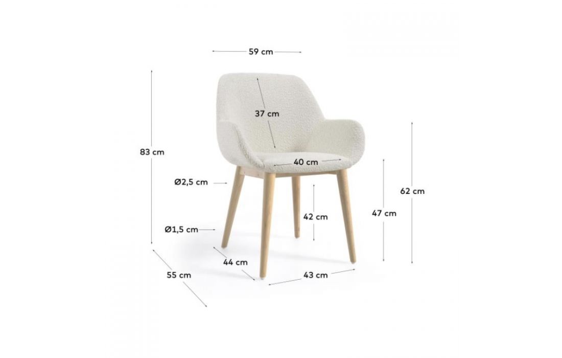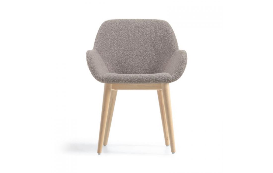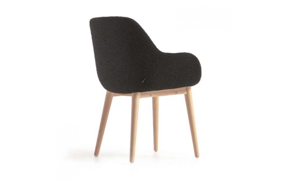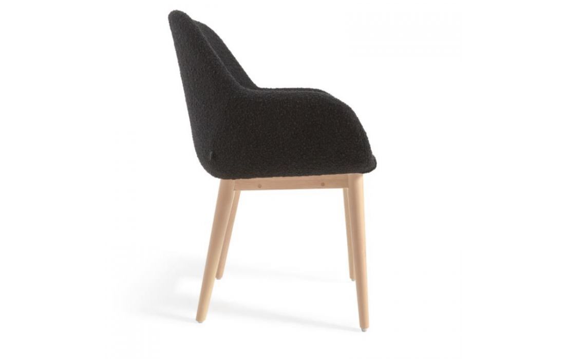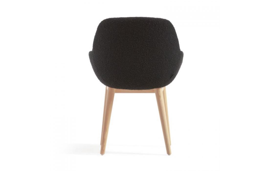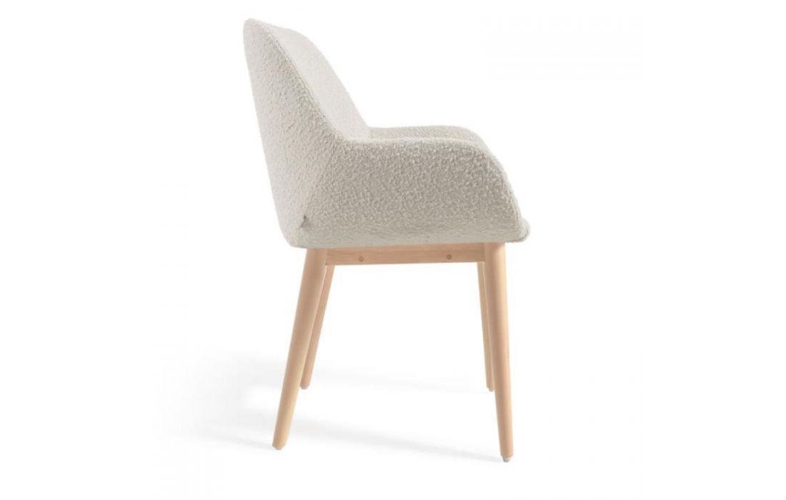 Cadeira com braços em tecido pelo de carneiro e pernas em freixo com acabamento natural
