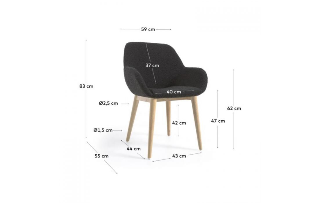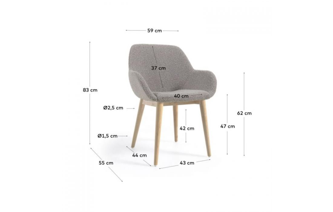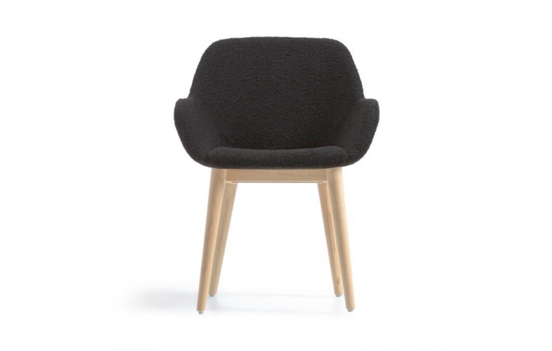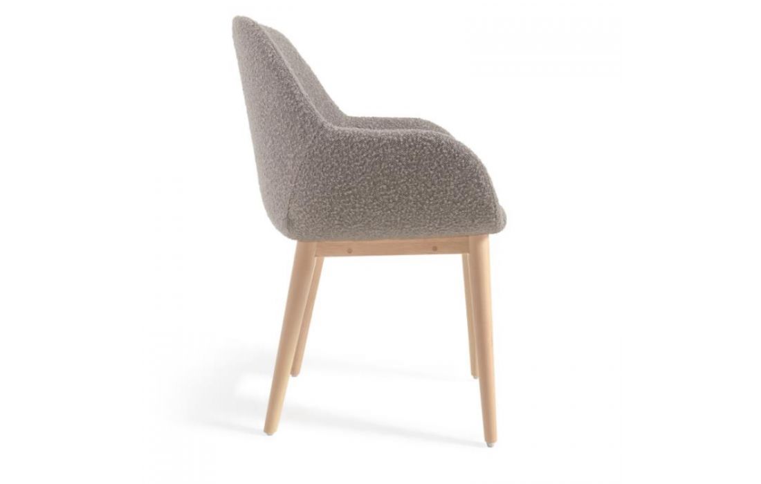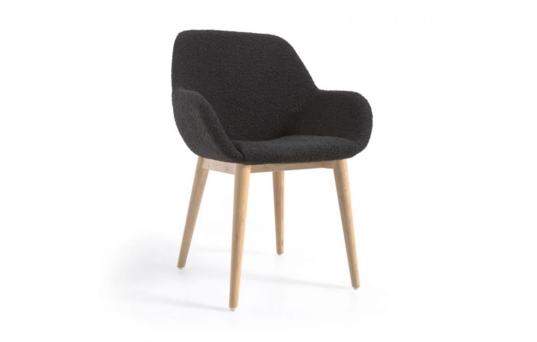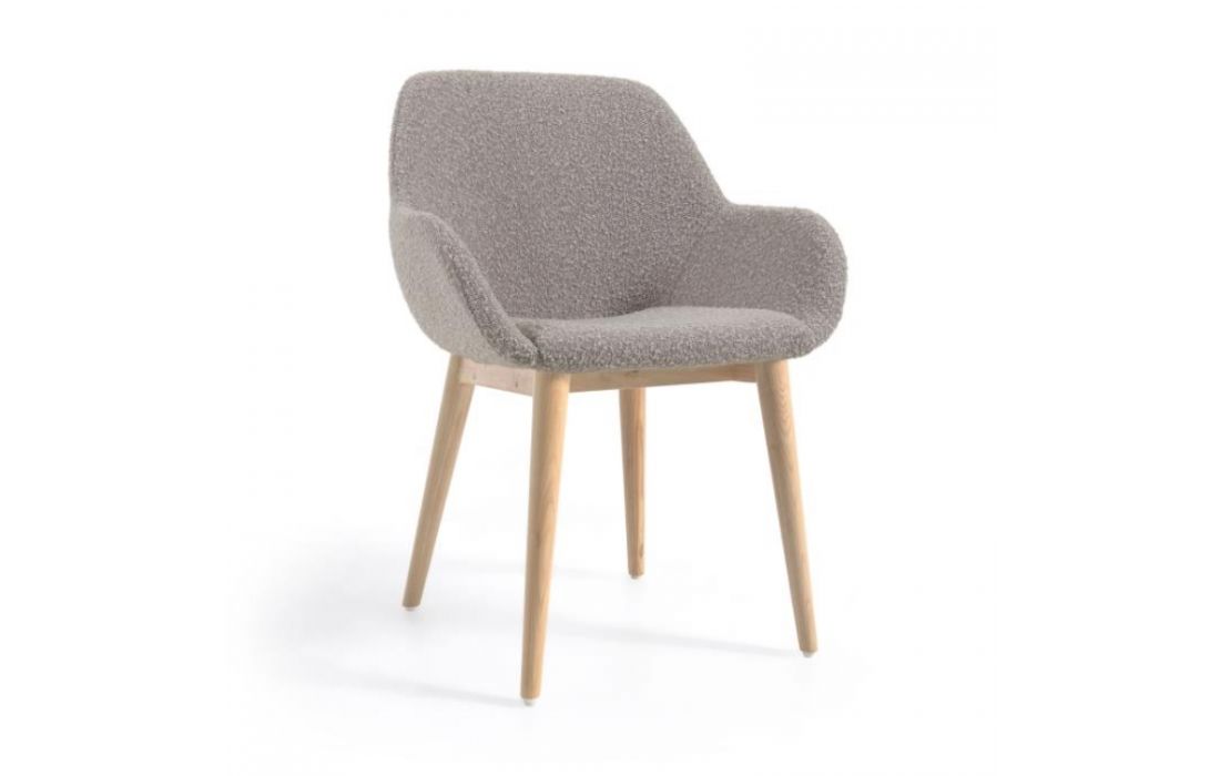 Cadeira com braços em tecido pelo de carneiro e pernas em freixo com acabamento natural