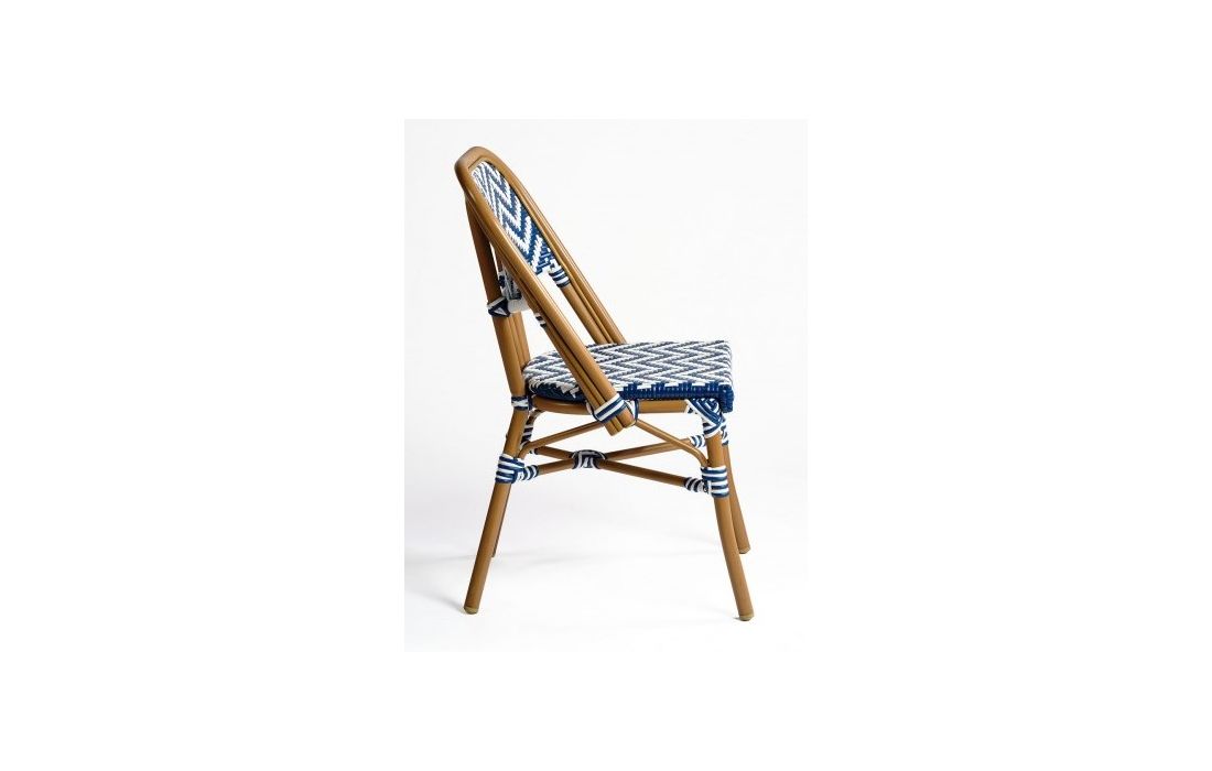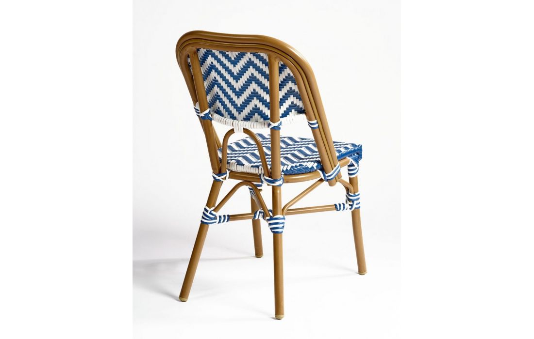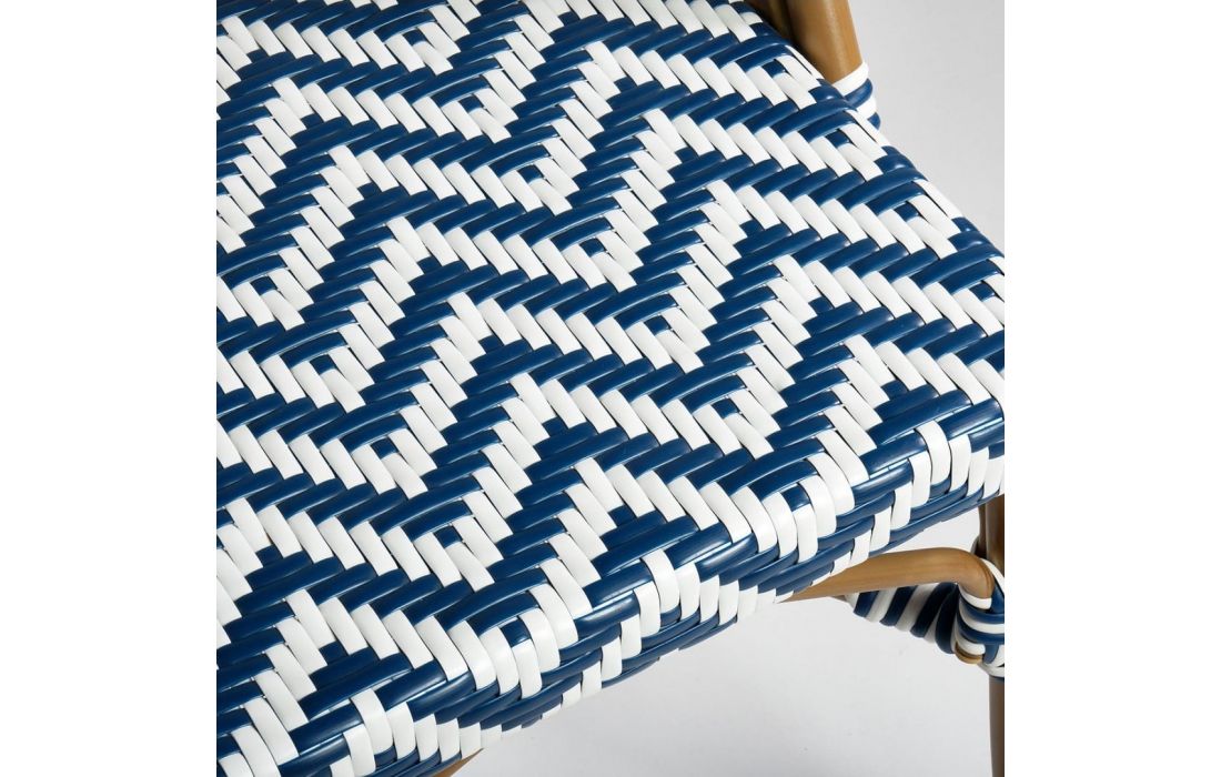 Cadeira em rattan sintético e estrutura em metal.
