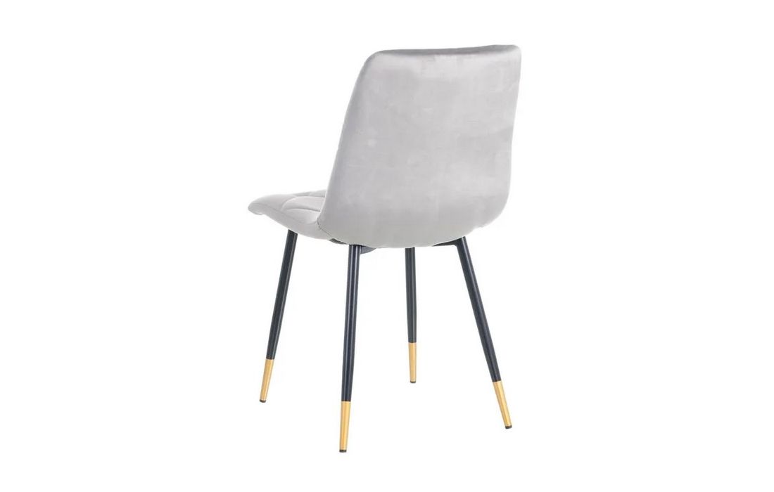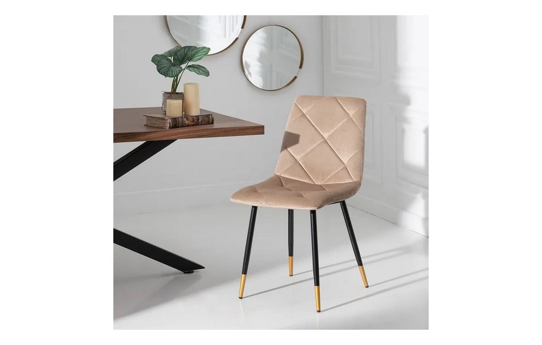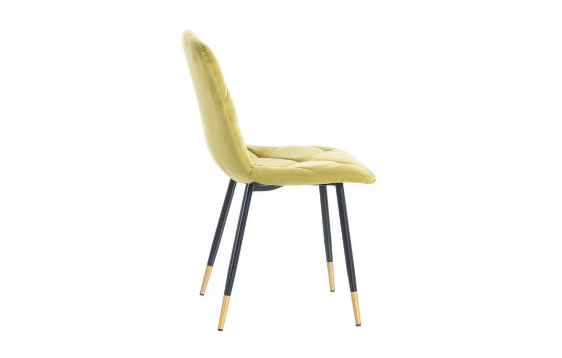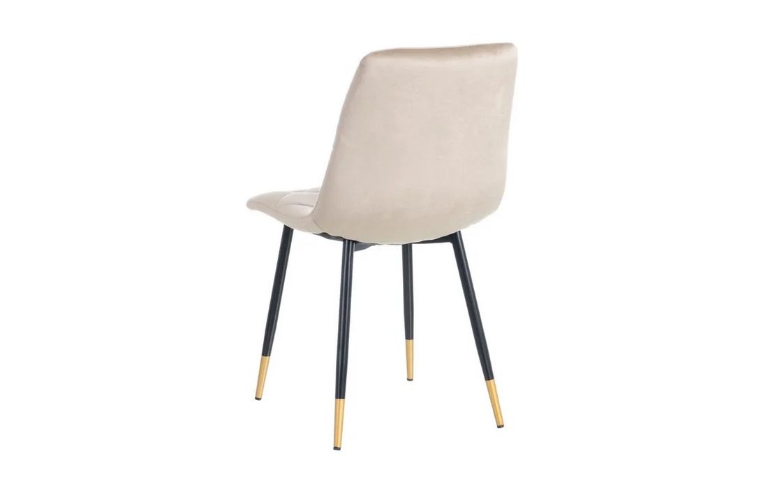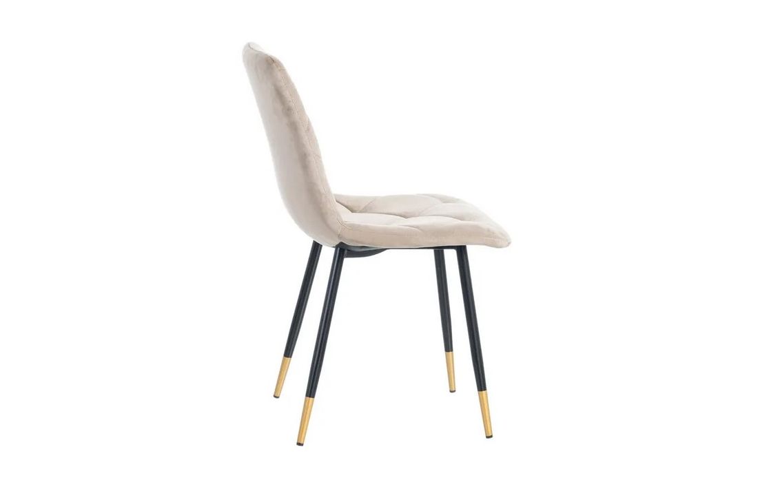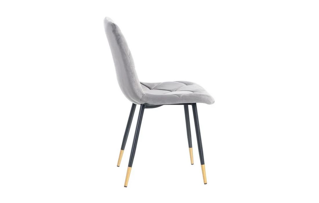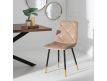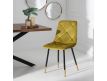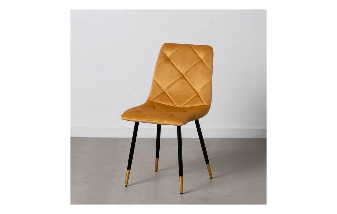 Cadeira feita em metal preto com pormenor dourado nas pernas e em tecido de veludo.