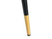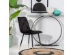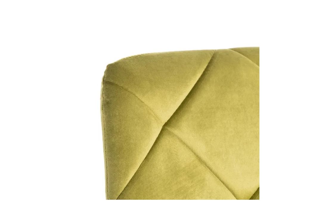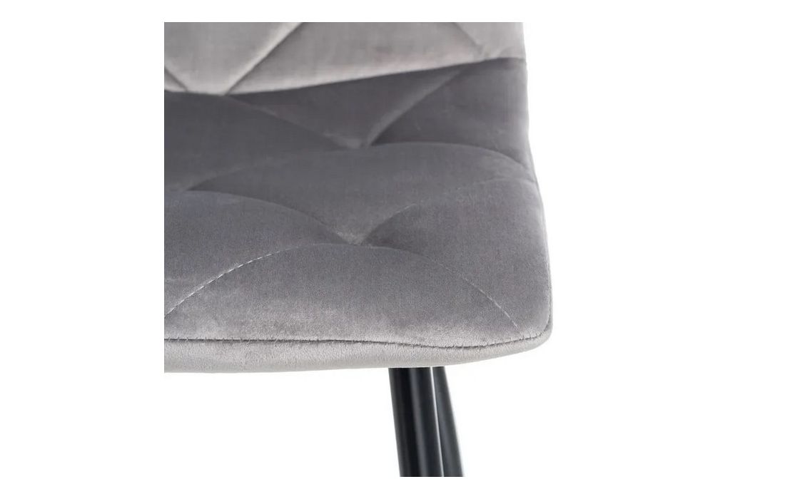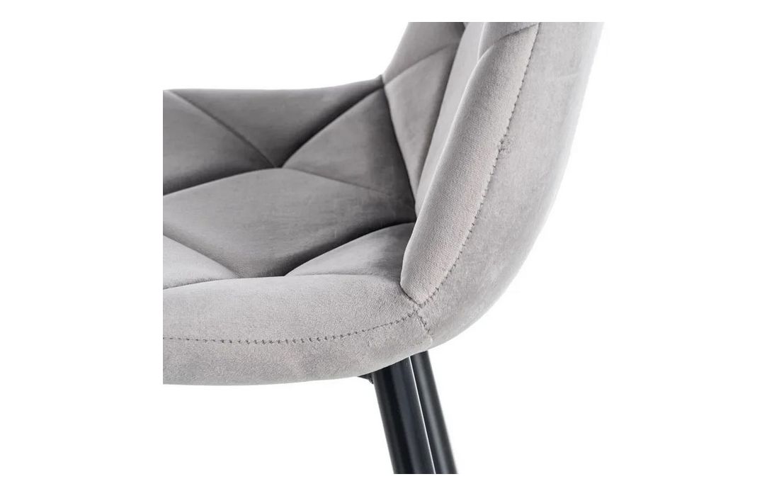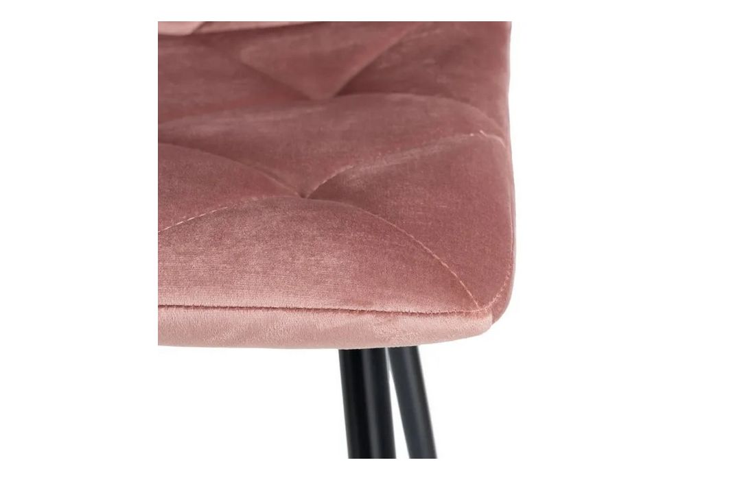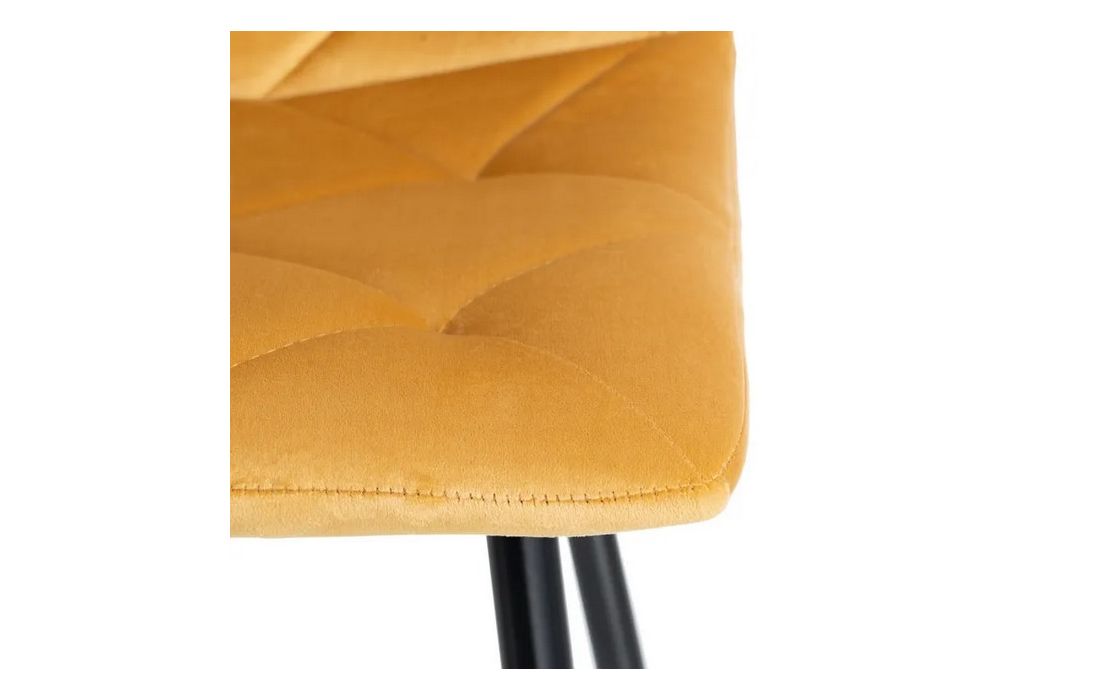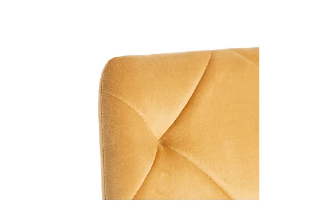 Cadeira feita em metal preto com pormenor dourado nas pernas e em tecido de veludo.