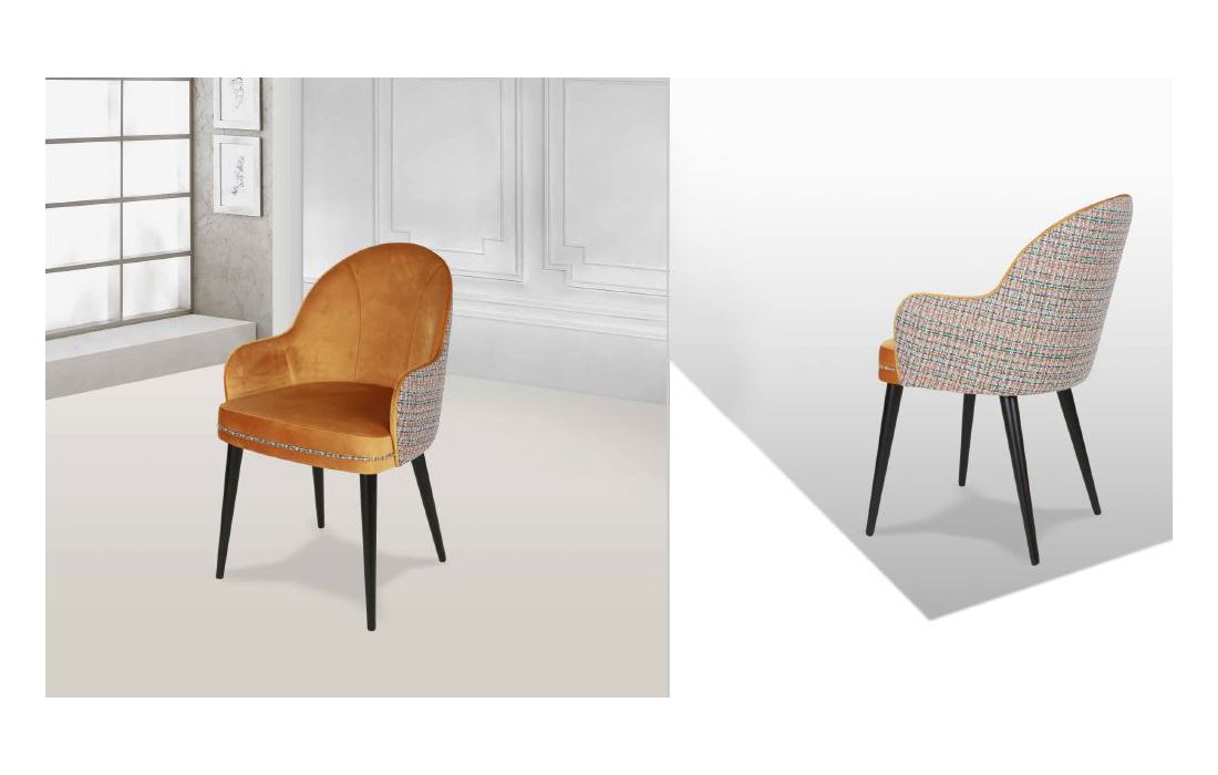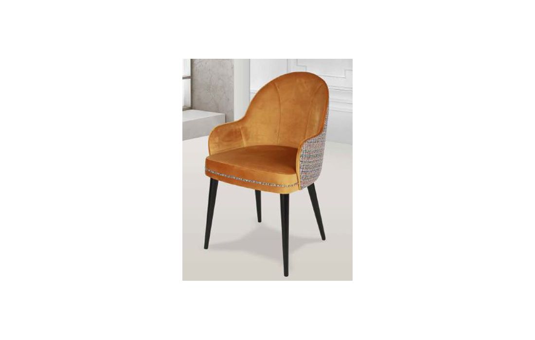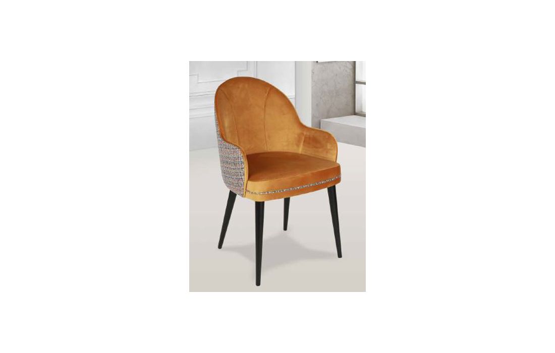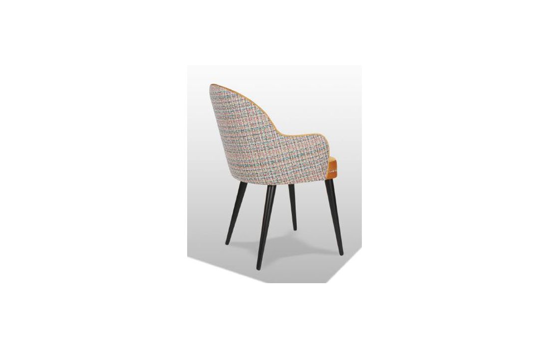 Cadeira c/ braços estofada com pés em madeira maciça de freixo nos vários acabamentos e revestimentos possiveis.