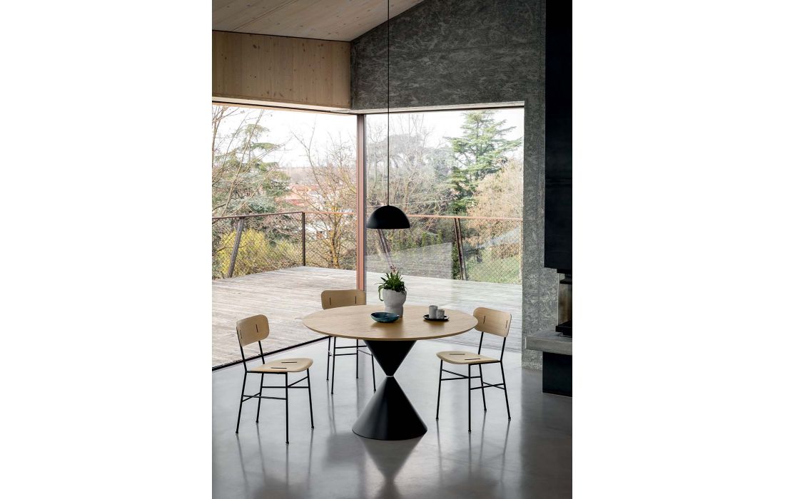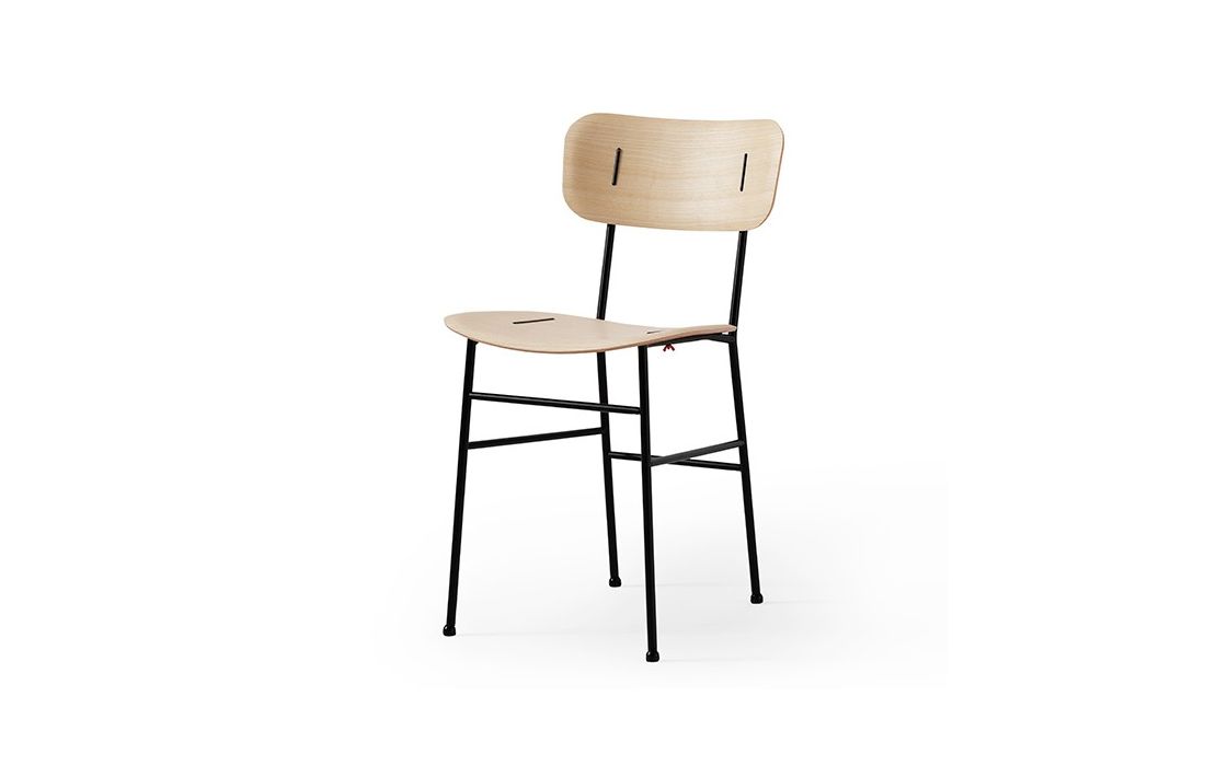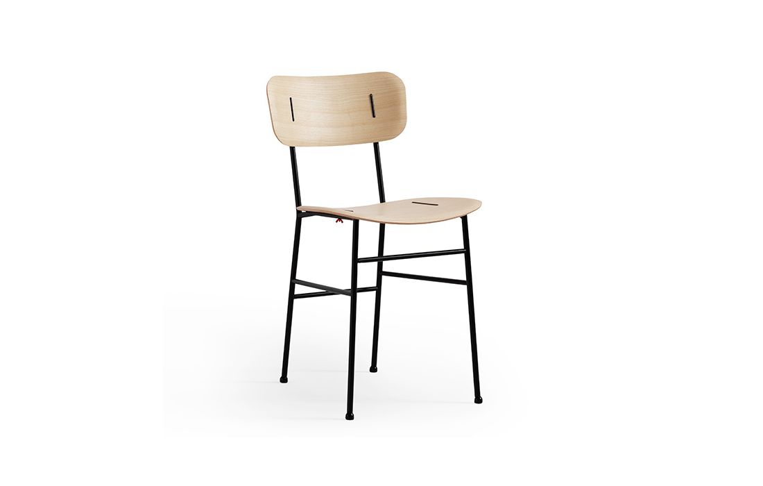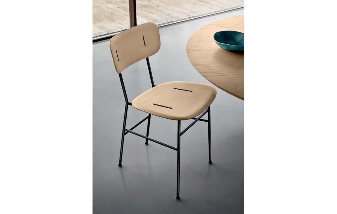 Cadeira com base de metal de quatro pés. Assento e encosto em madeira folheada, com aplicações metálicas na mesma cor da estrutura, porcas borboletas em metal preto.Destinatário :