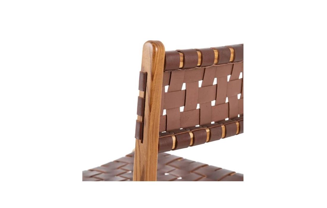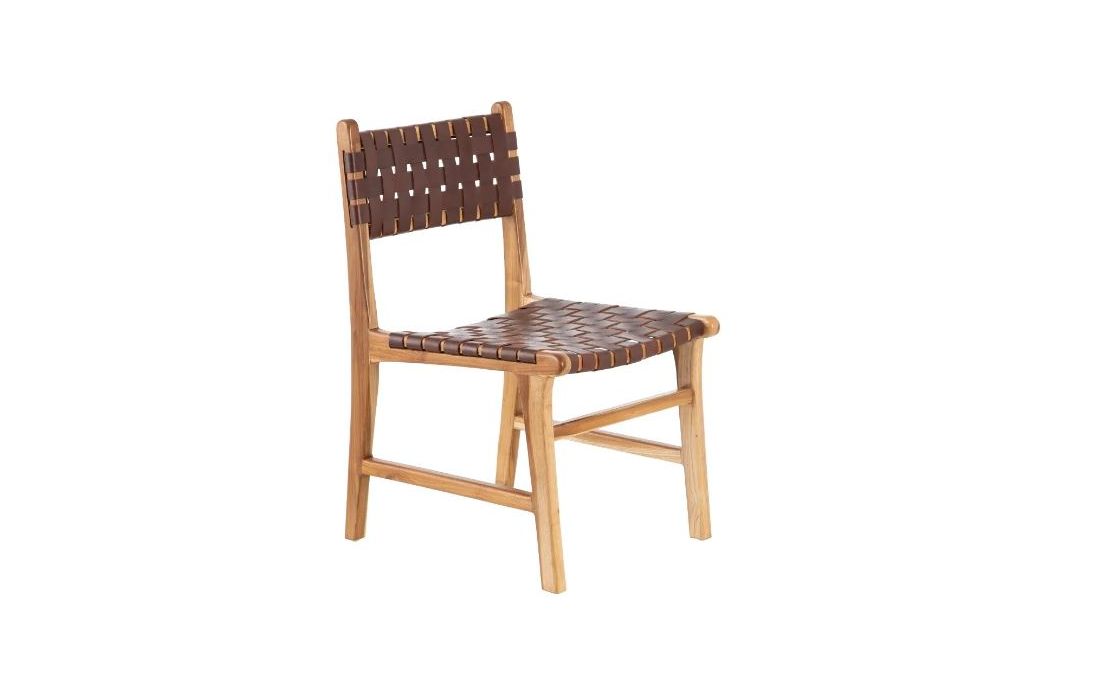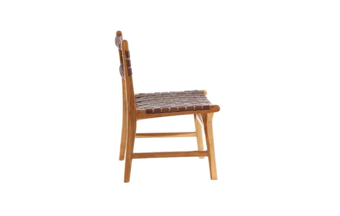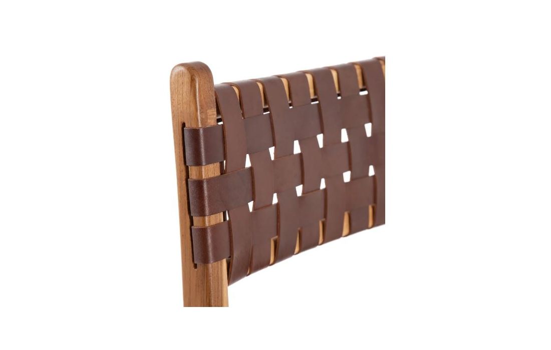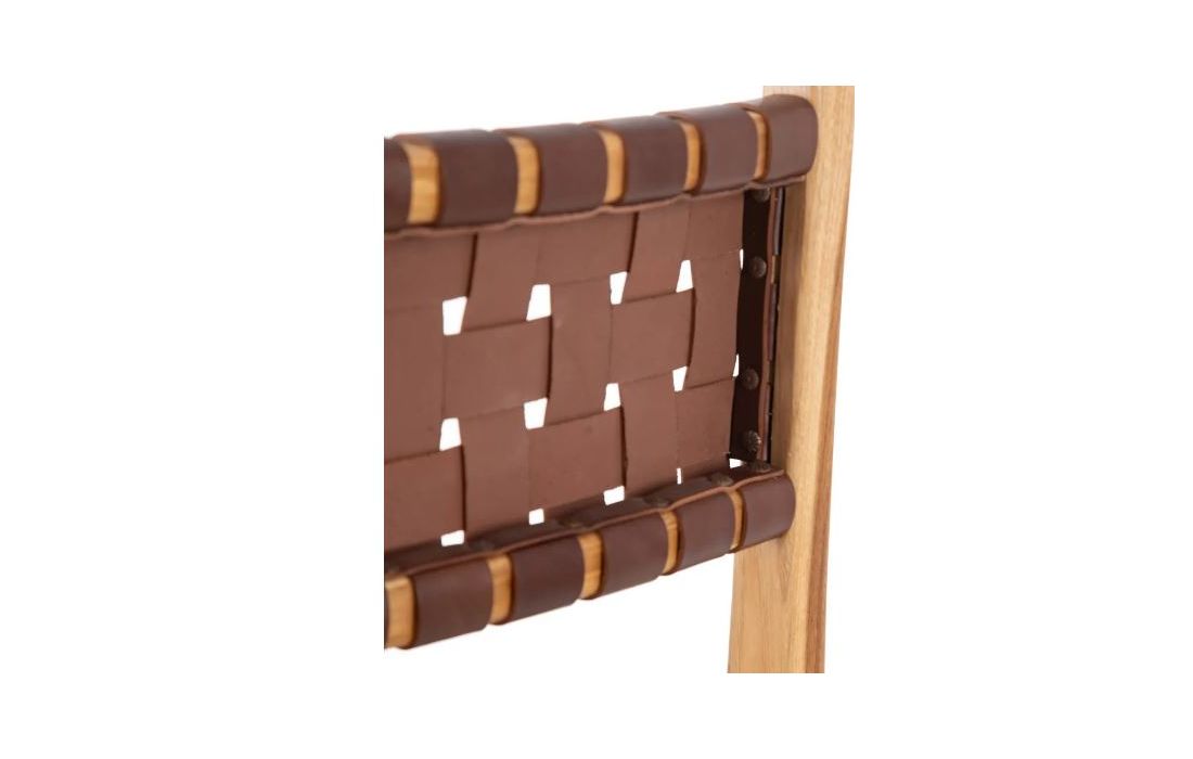 Cadeira com estrutura em madeira de teka e couro na cor castanha.Destinatário :