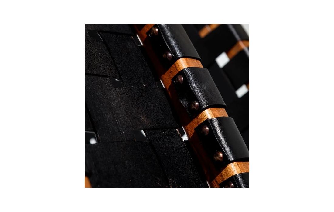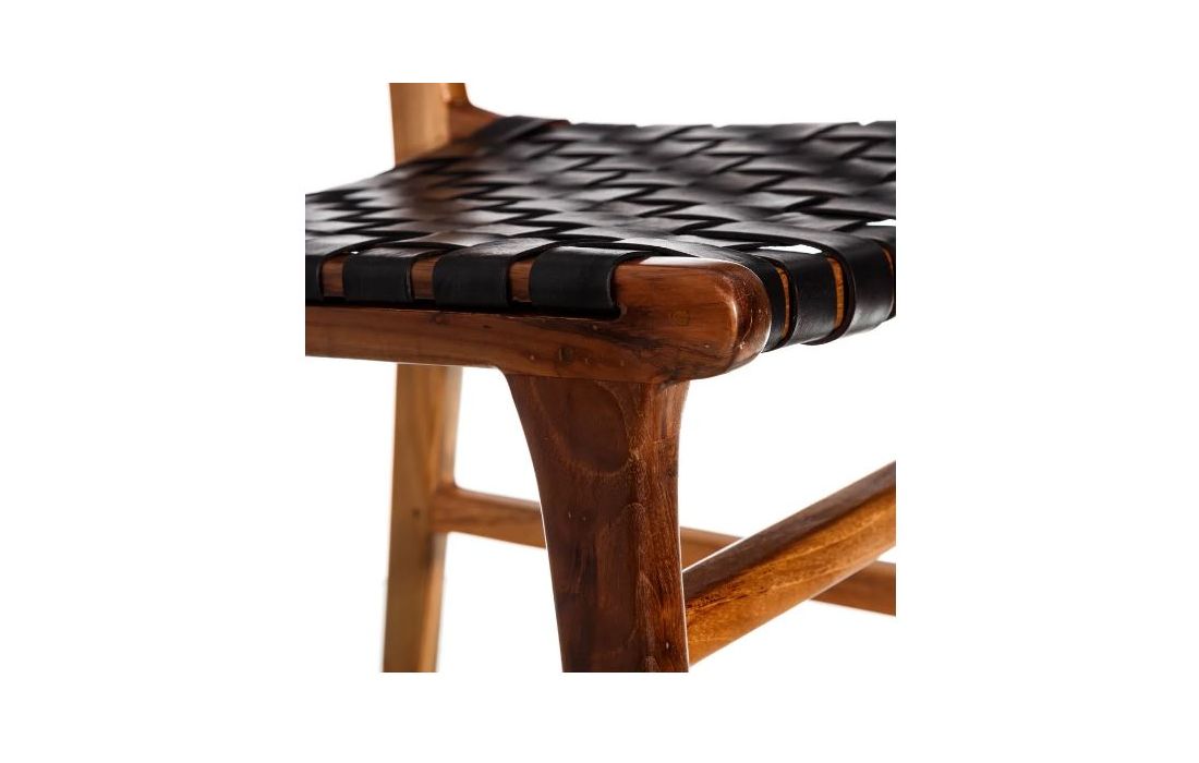 Cadeira com estrutura em madeira de teka e couro na cor preto.Destinatário :