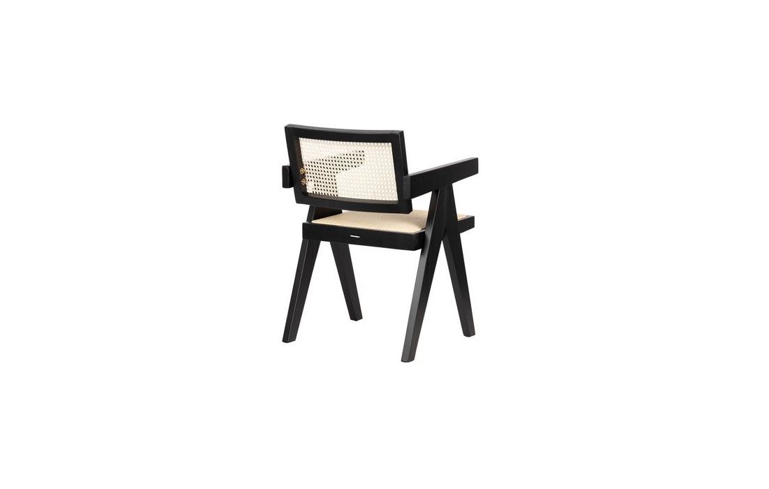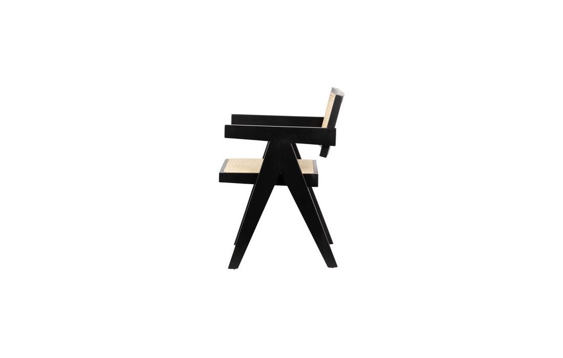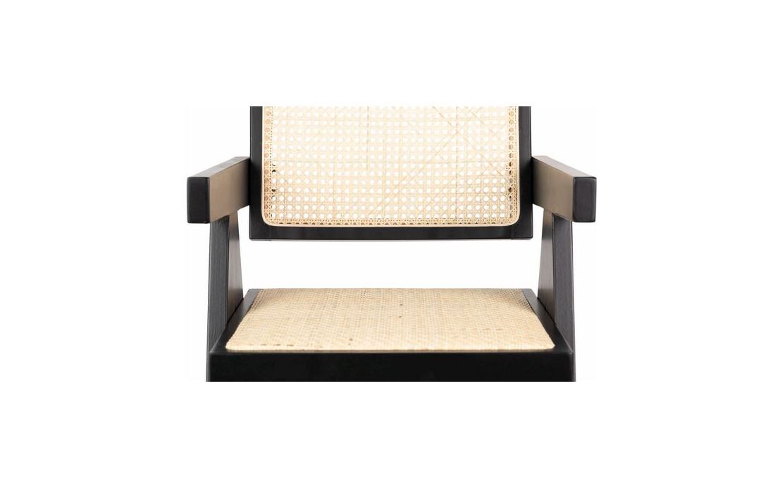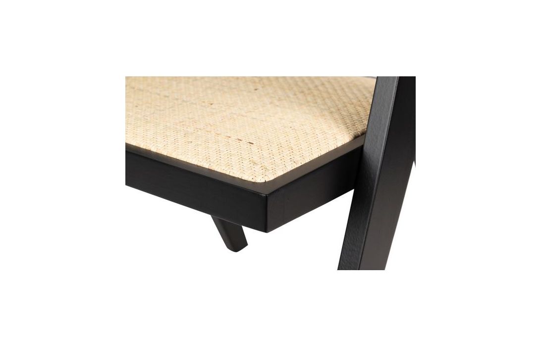 Cadeira em madeira de olmo pintada a preto com assento e costa em ratan