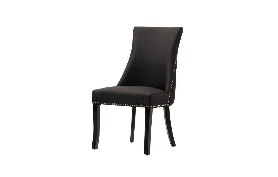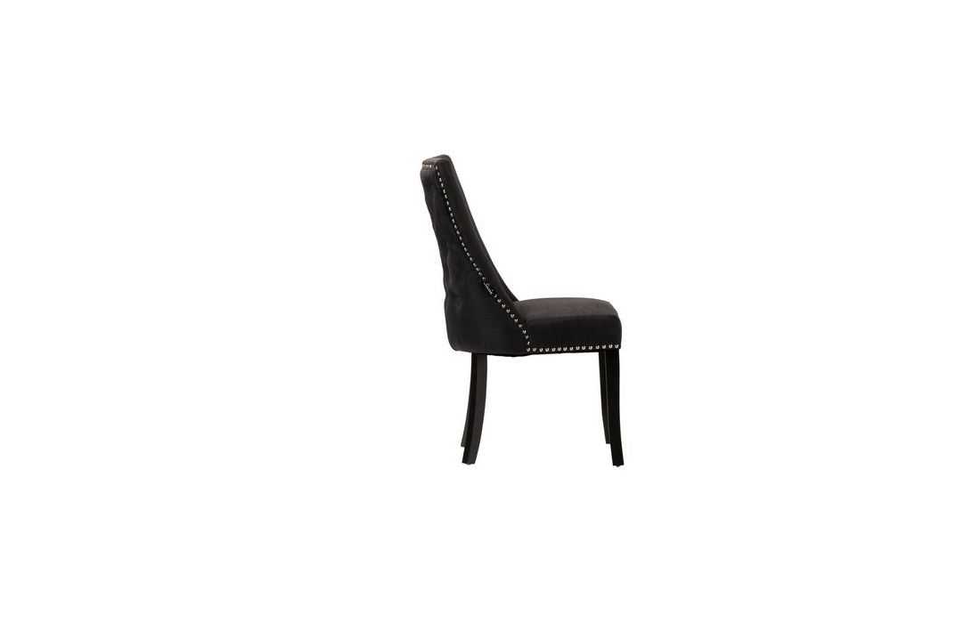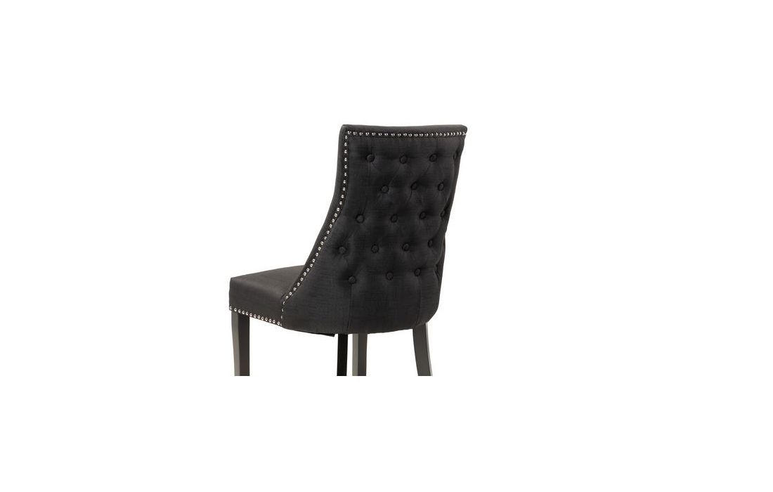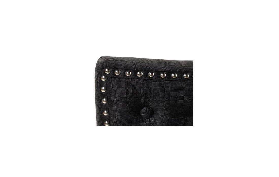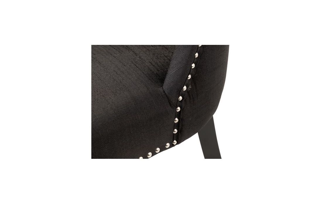 Cadeirão estofado a tecido de linho de cor preto com promenores em capitonê e com pés em madeira de carvalho pintados em pretoC 56 P 62 A 96