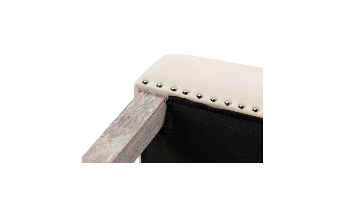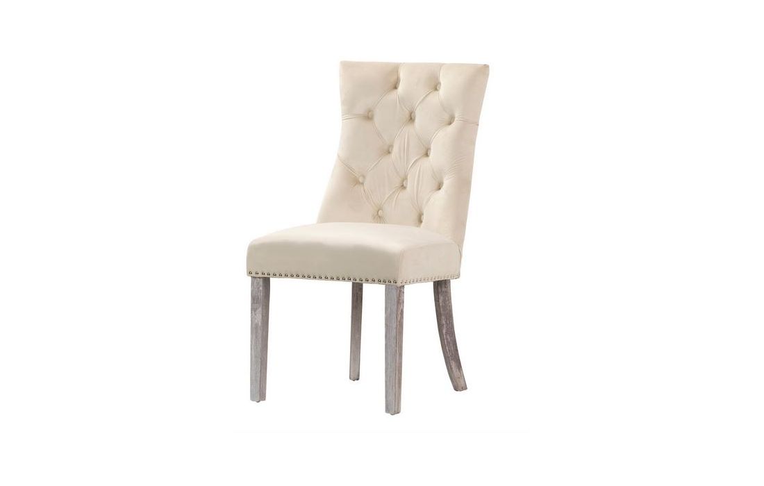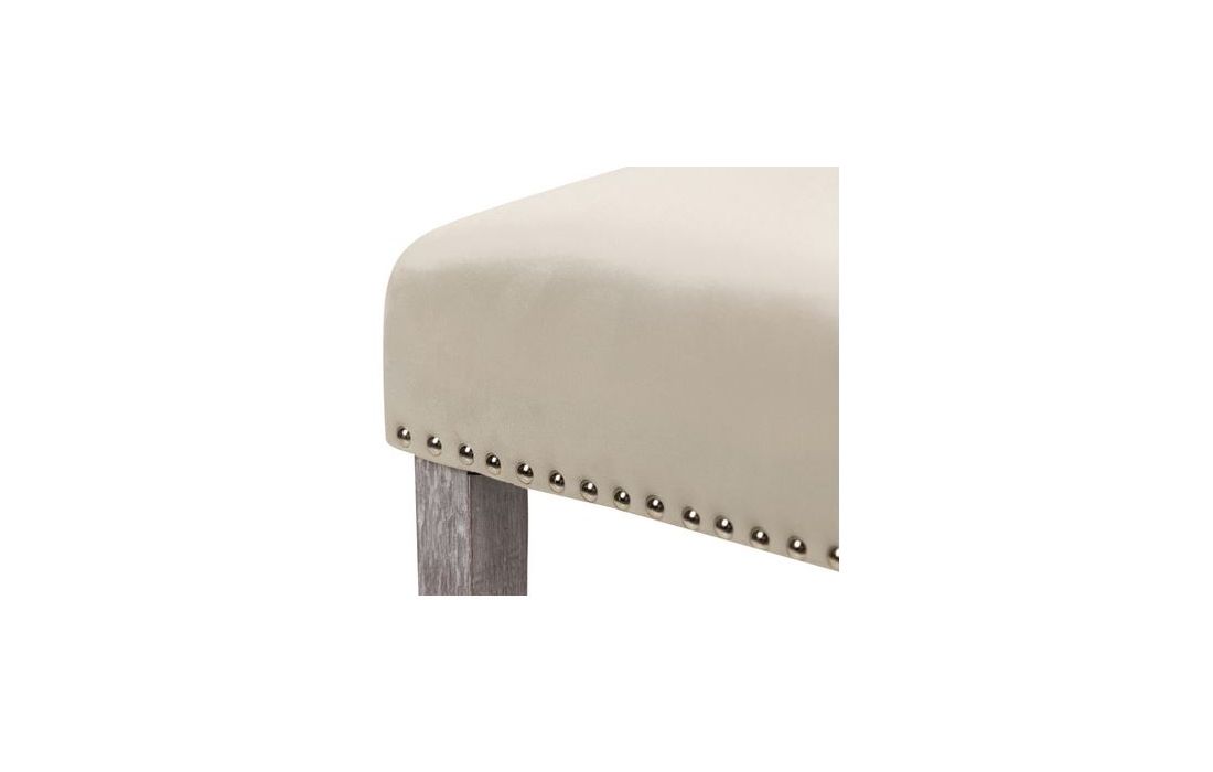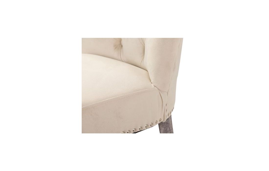 Cadeirão em capitoné estofada em tecido aveludado de cor branco e os pés em carvalho pintados em cinzaC 54 P 55 A 97
