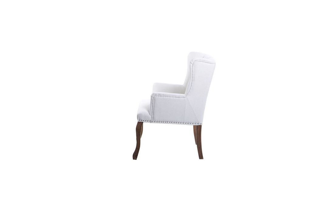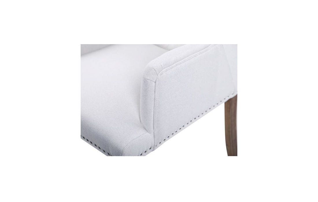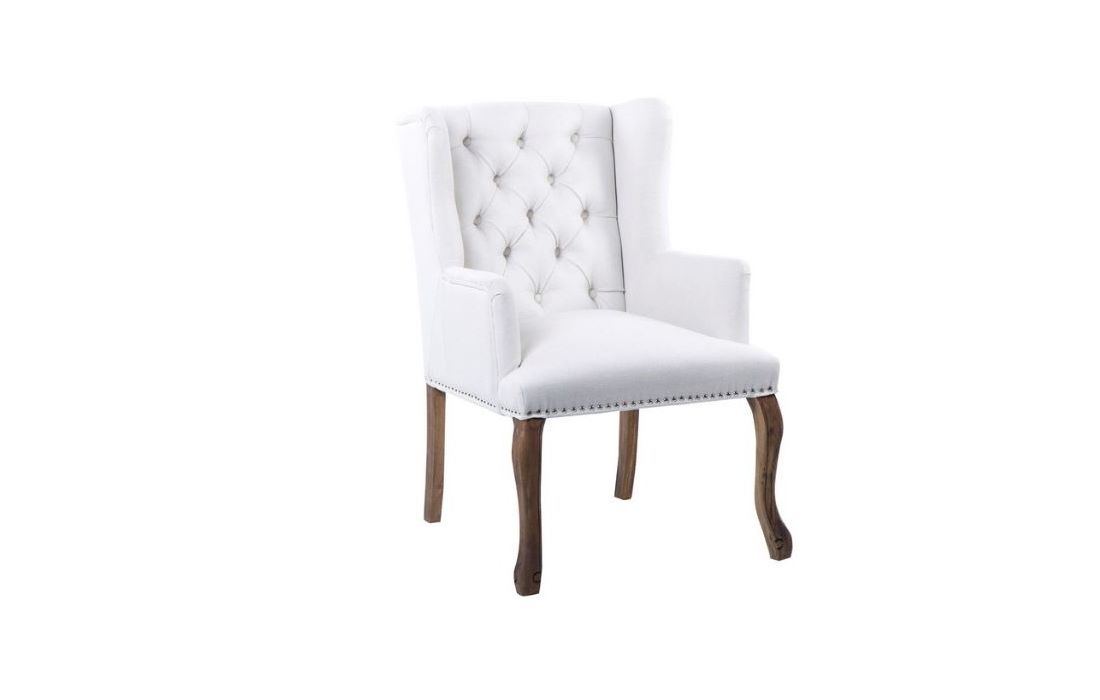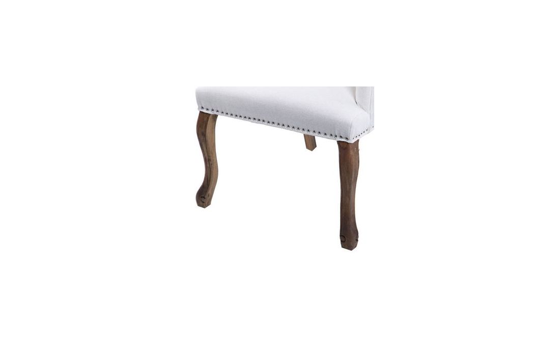 Cadeirão estofado a tecido de linho de cor beige com pormenores em capitonê, pés em gauchoC 65 P 75 A 98
