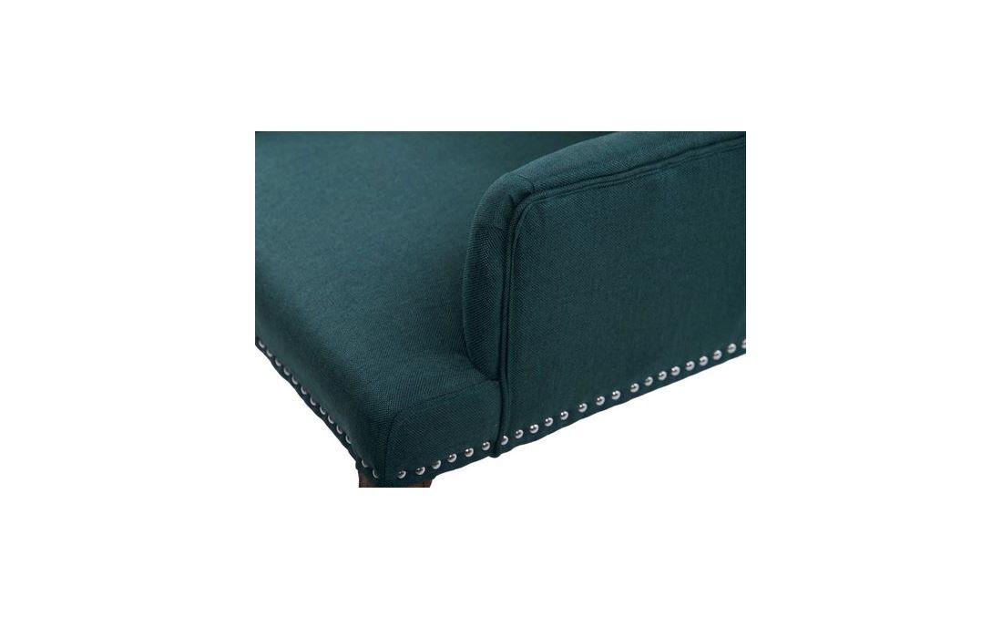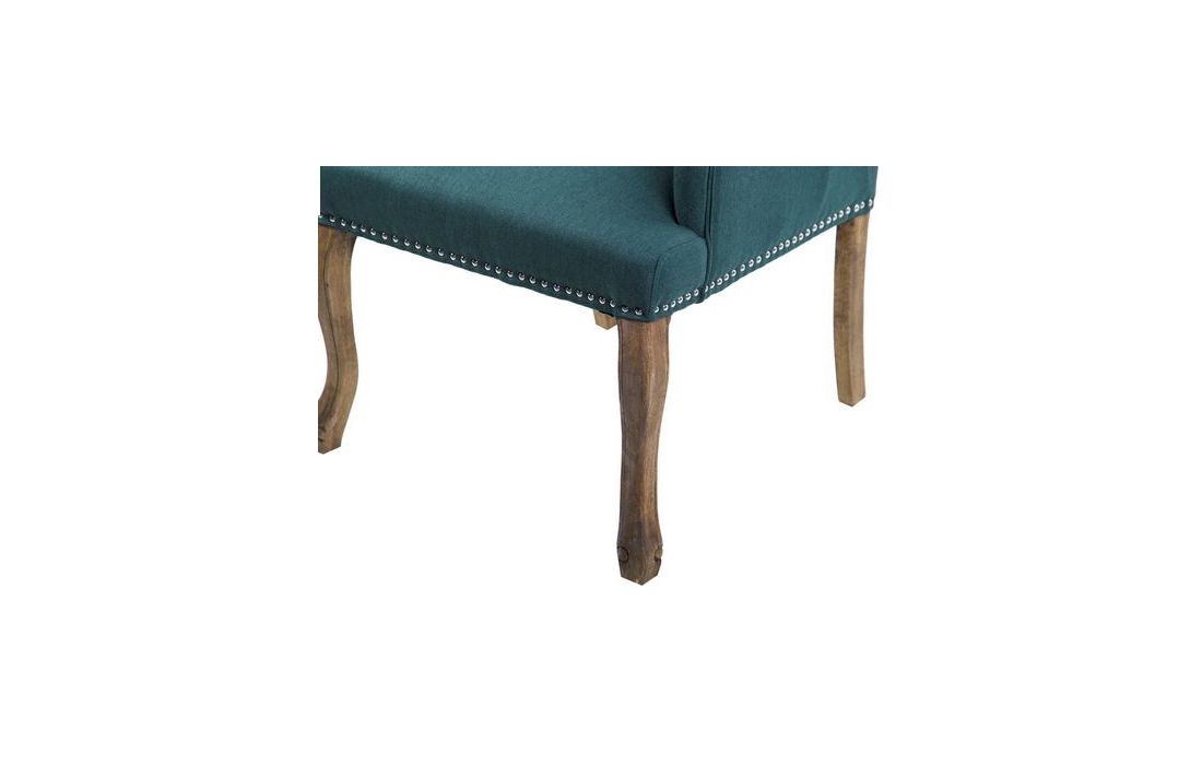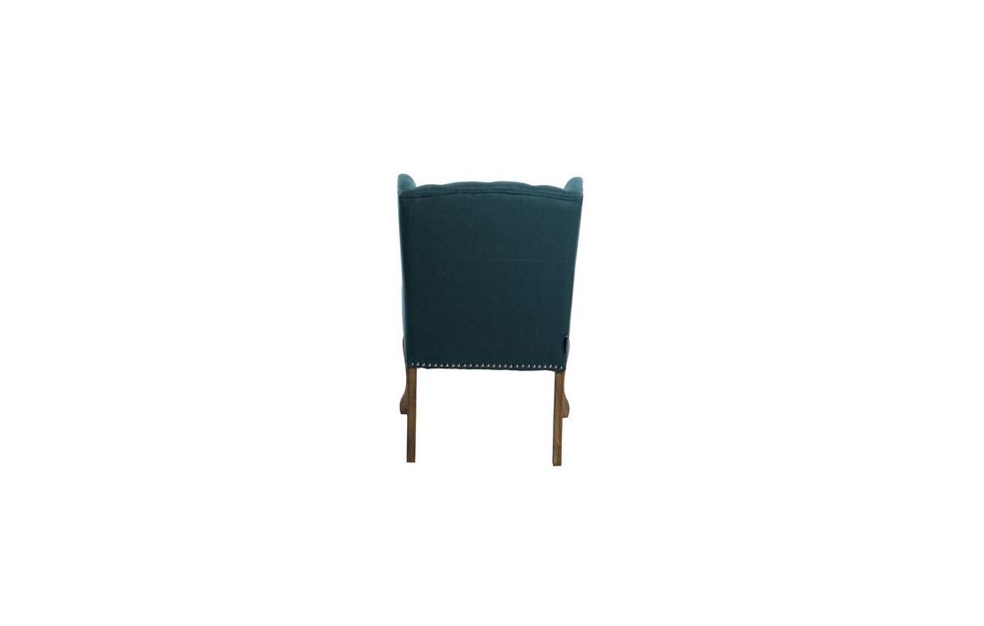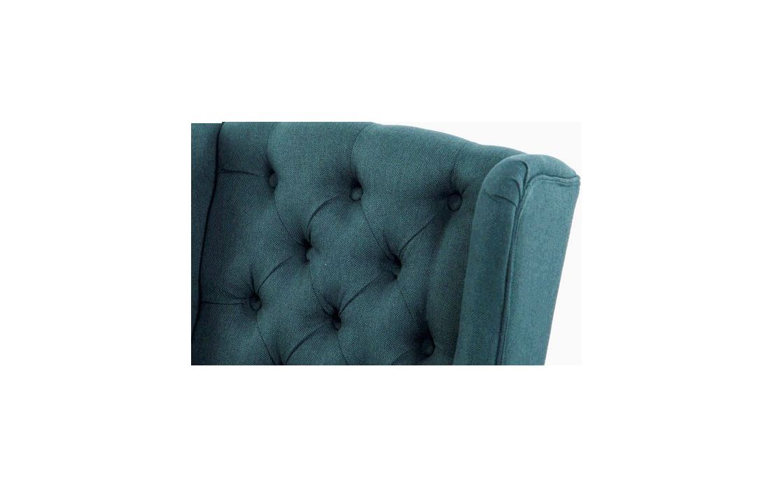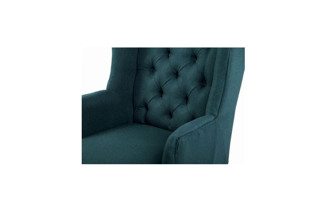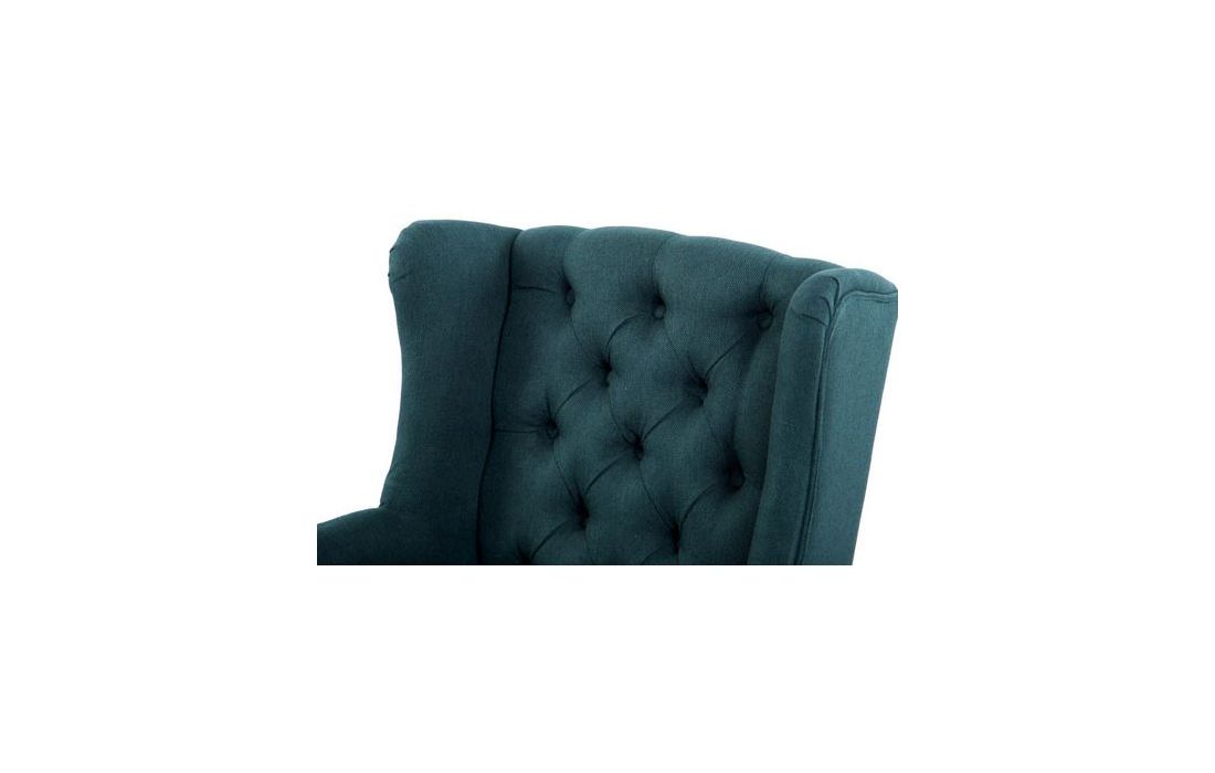 Cadeirão estofado a tecido de linho de cor verde com pormenores em capitonê, pés em gauchoC 65 P 75 A 98