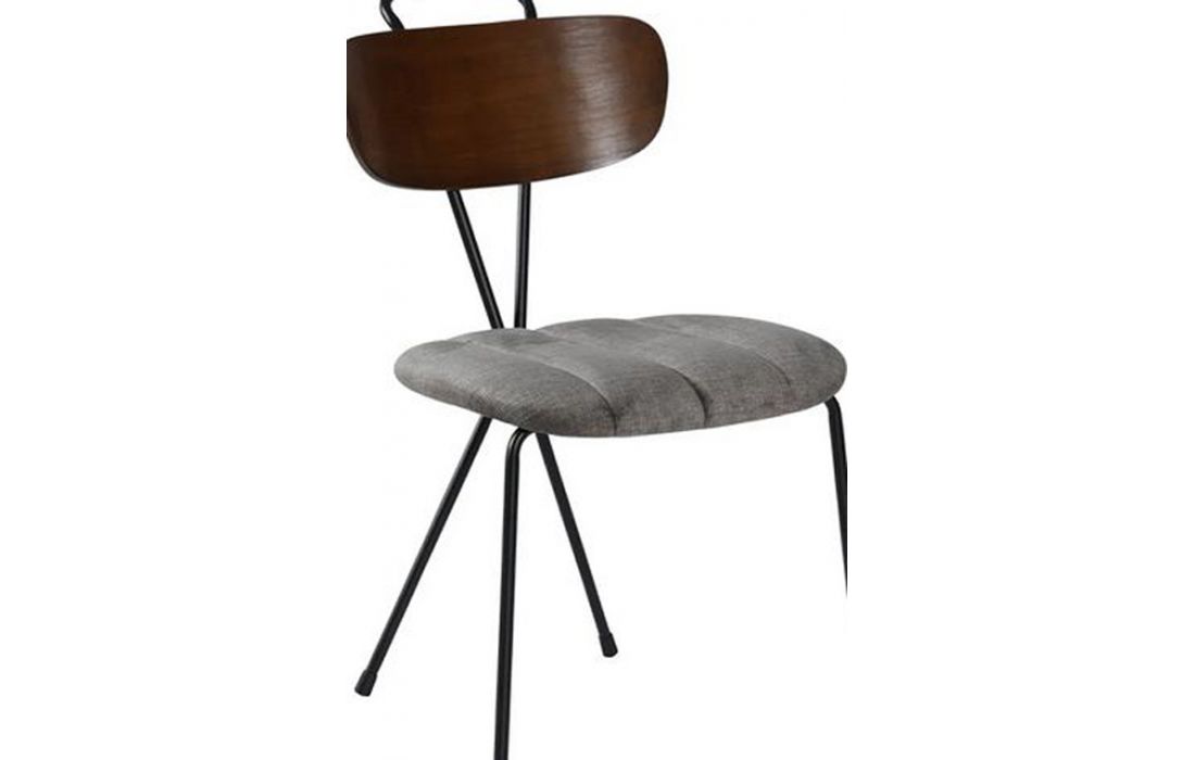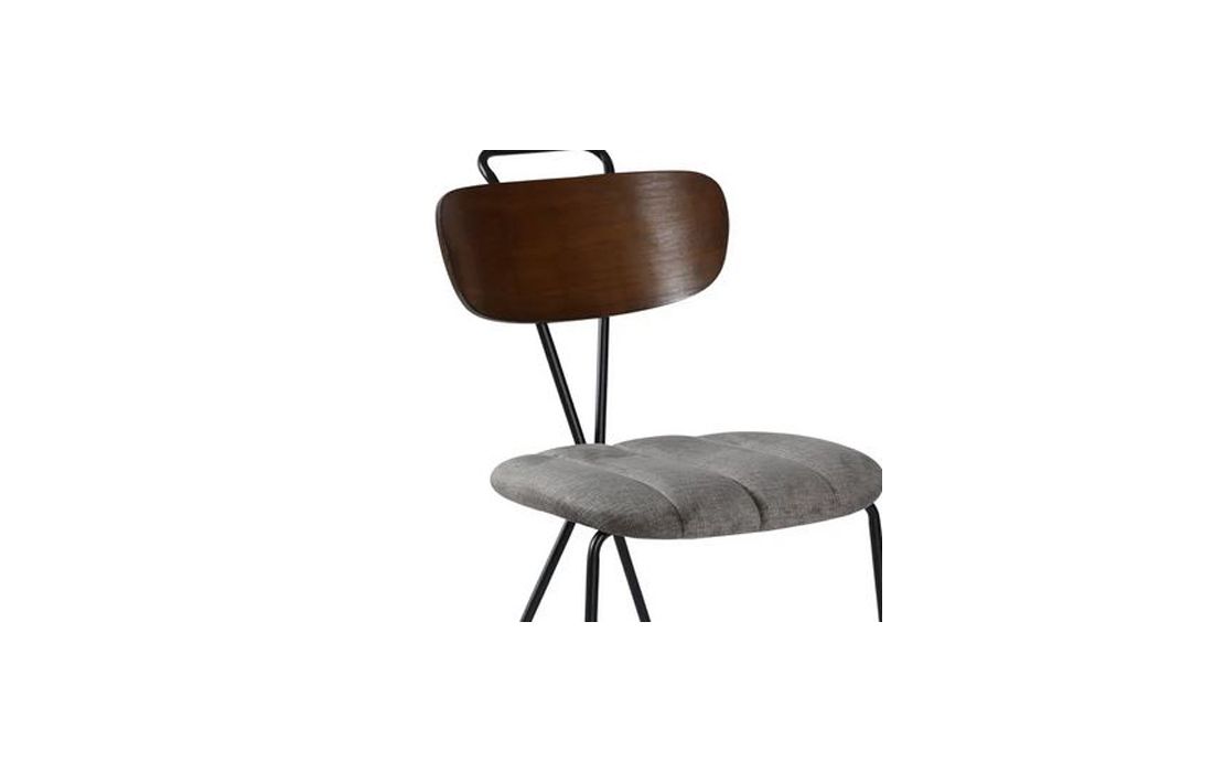 Cadeira com estrutura de metal e assento em tecido cor cinza