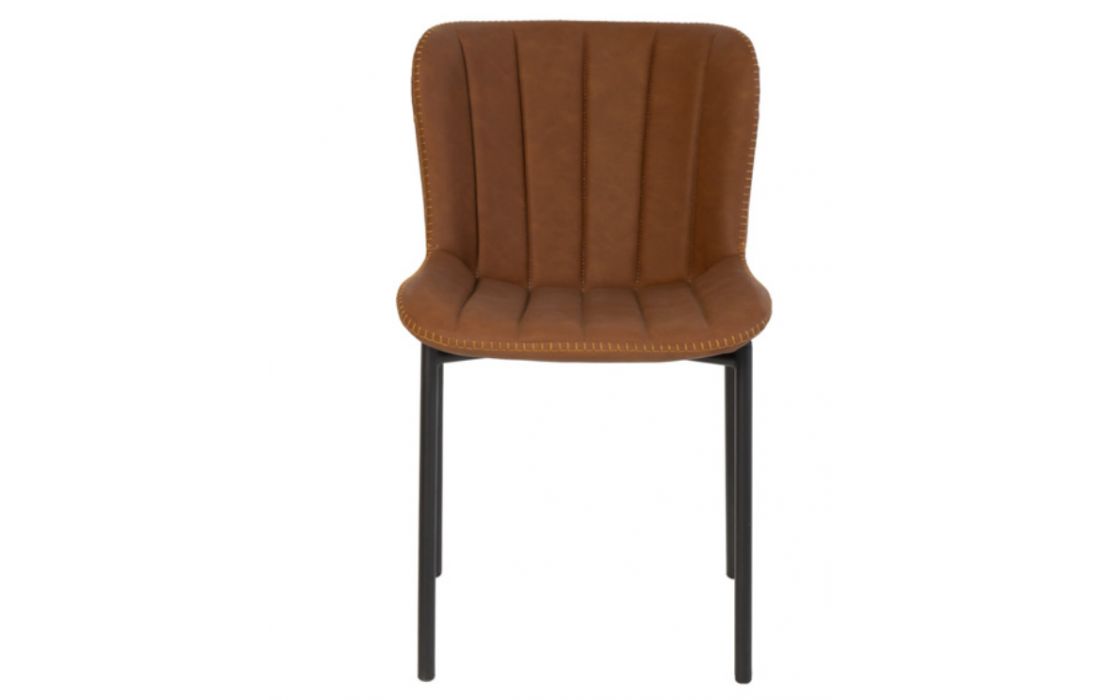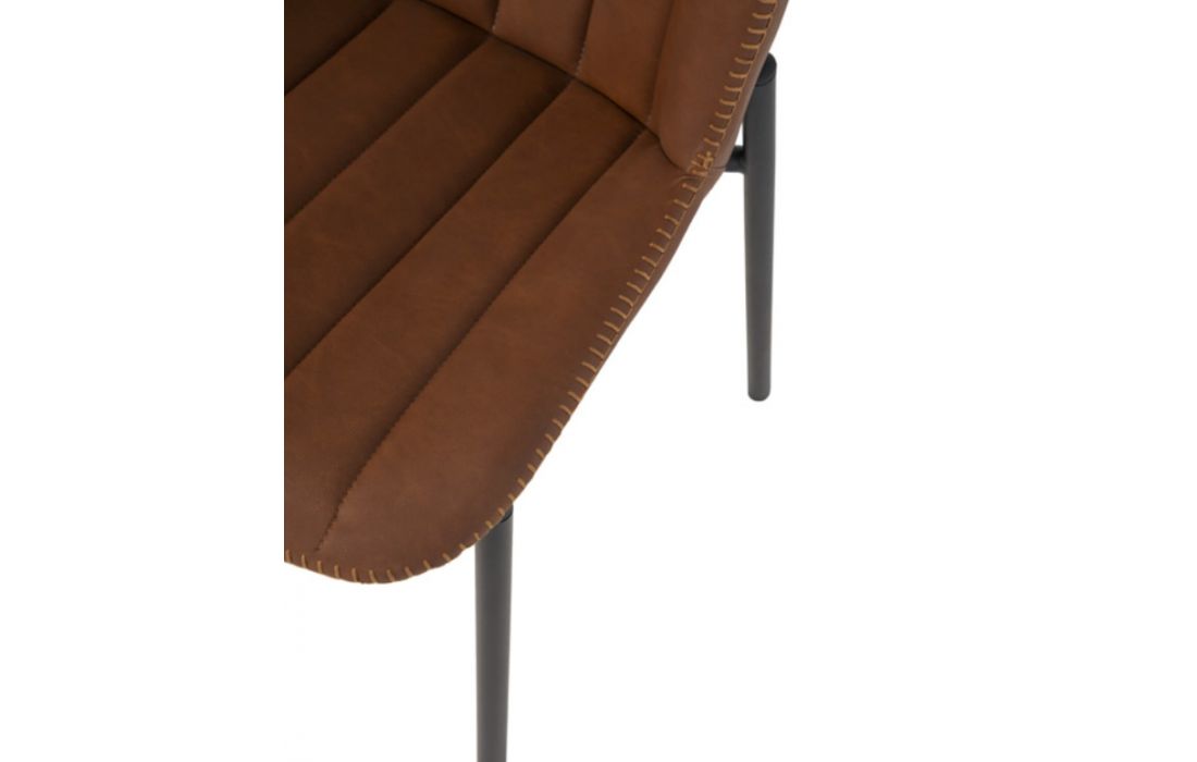 Cadeira estilo industrial vintage com assento em couro sintético e pernas em metal.
