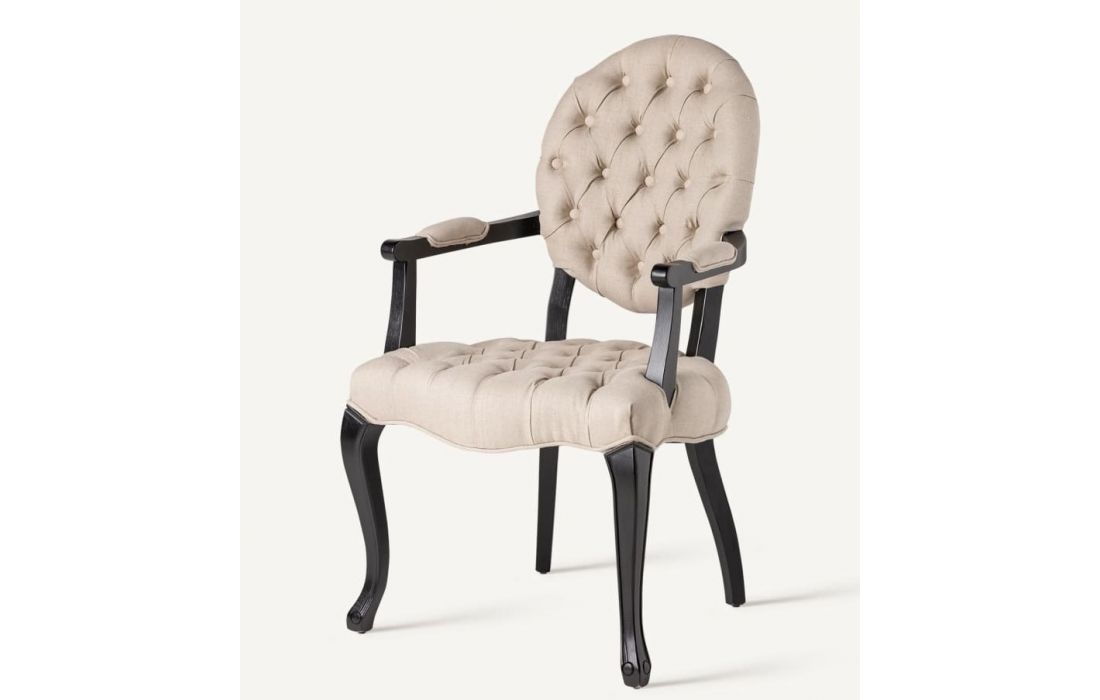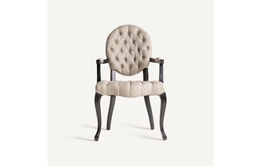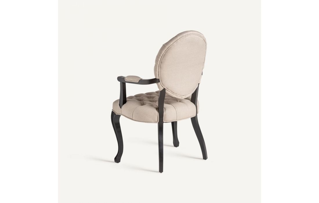 Cadeira com estrutura em madeira de freixo e estofo em tecido.
