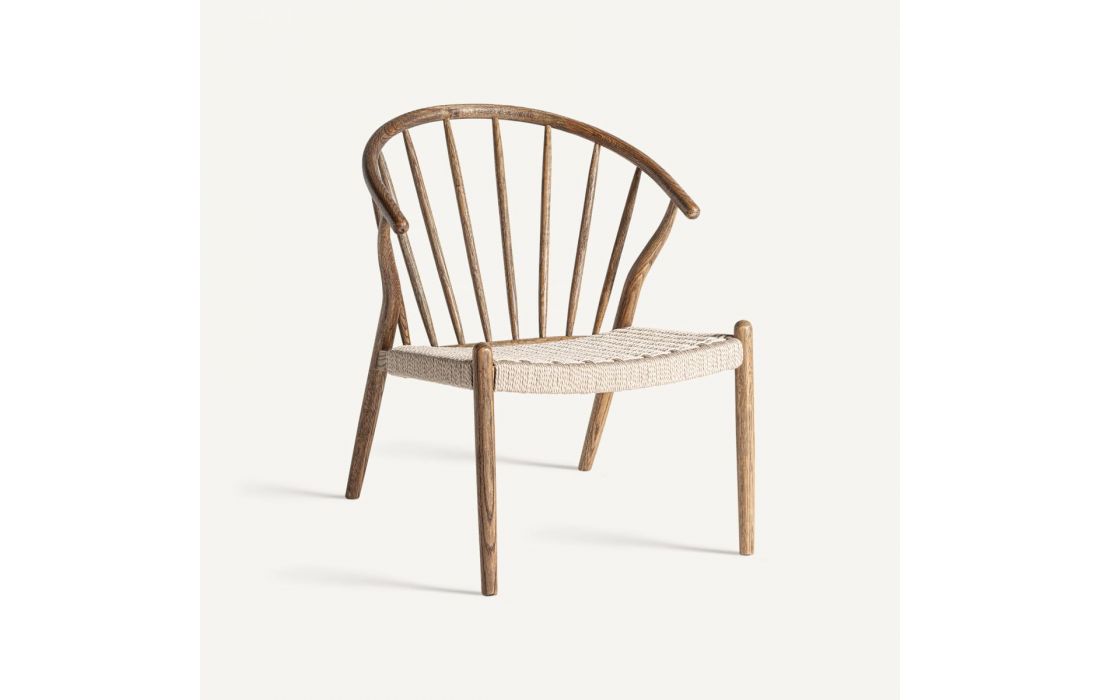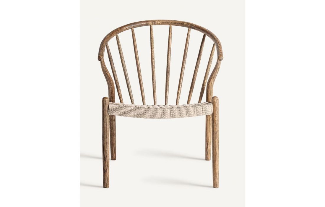 Cadeira estilo boho feita em madeira de carvalho e corda na cor castanhaDestinatário :