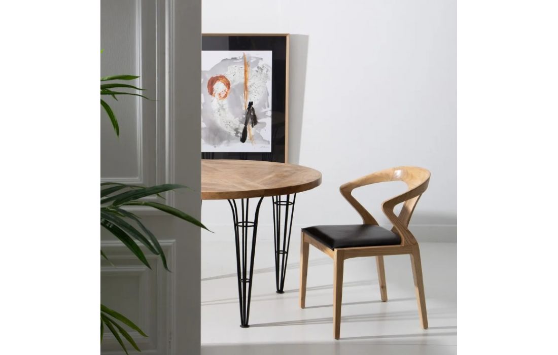 Cadeira com estrutura em madeira sungkai e almofadado em pele.Destinatário :